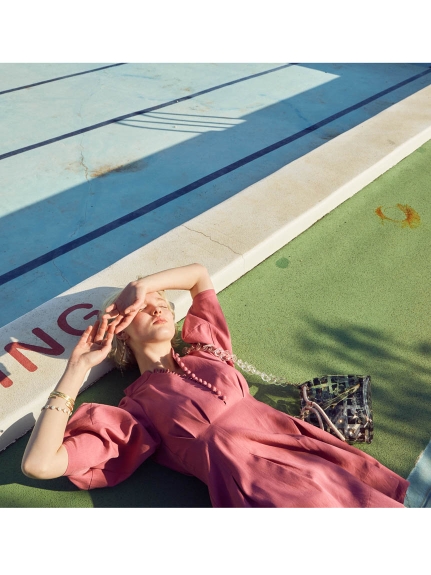 ハリがあり、発色の良い生地を使用しました。清楚なオフホワイトはもちろん、ピンクやグリーンで個性を演出しても。ここ一番で登場させたいワンピースです。
