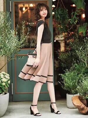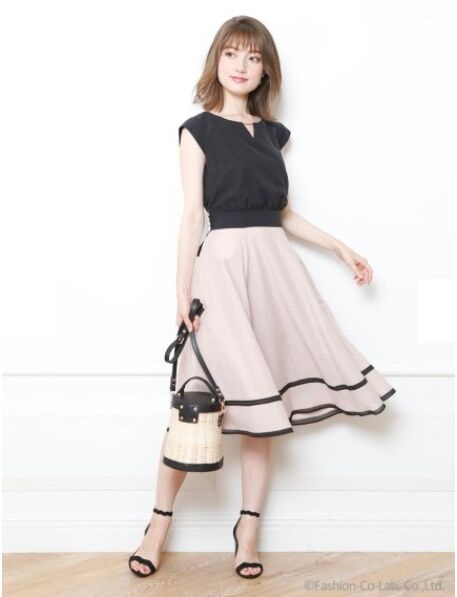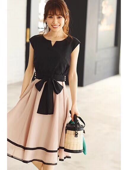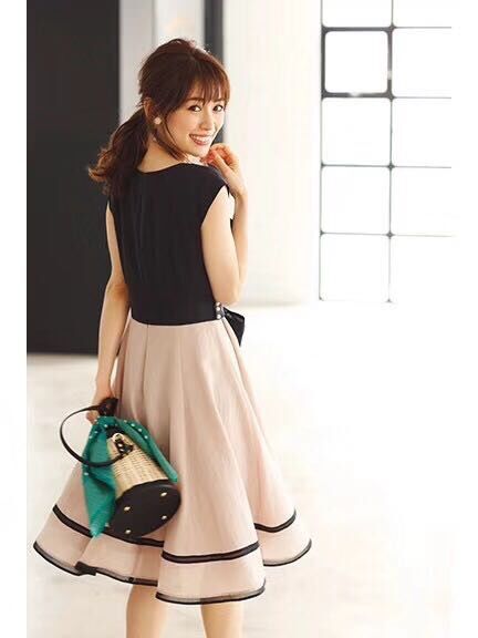 首元にバーデザインのアクセサリーを添えた、フェミニン溢れるワンピース。フレアシルエットが動くたびに揺れて、可憐な印象にしてくれます。ウエストリボンをバックにしたり、ベルトを取ったりと3wayで着られるので、シーンに合わせてコーディネートを楽しんで