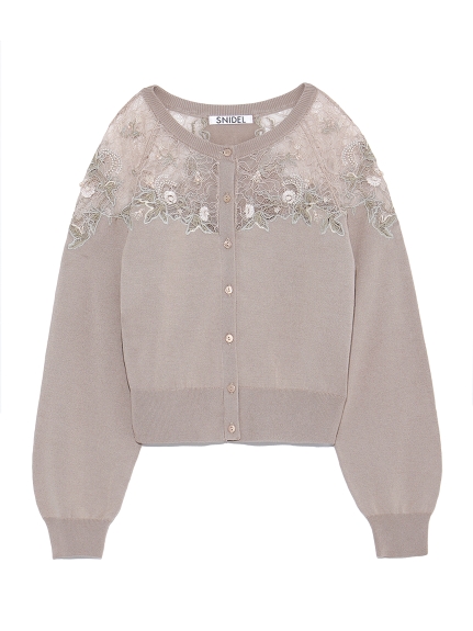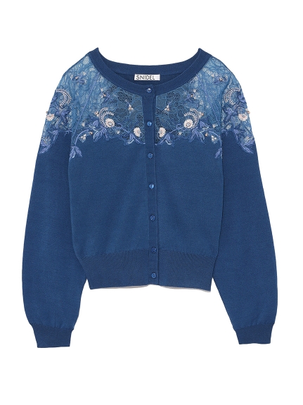 フラワーやリーフモチーフなどのエンブロイダリー刺繍を、贅沢にあしらったお洒落カーディガン。
