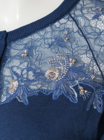素材 [本体]レーヨン42%、アクリル30%、ナイロン17%、羊毛8%、ポリウレタン3%[レース]ナイロン100%[刺しゅう部分]上糸:(光沢糸)レーヨン100%(無光沢糸)ポリエステル100%/下糸:ポリエステル100%