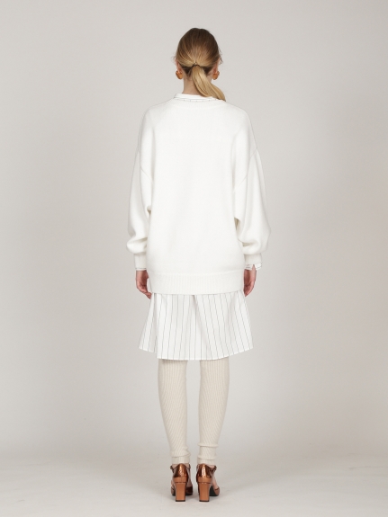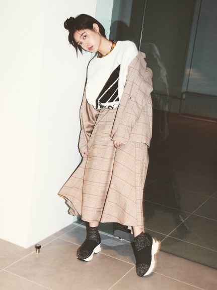 スウェット風のシルエットがメンズライクなニットプルオーバーの登場。今季は柔らかい素材のロングスカートに合わせてリラックスムードに着こなしたり、ショート丈のボトムスや、ニーハイブーツを合わせてバランス良くスタイリングするのがおすすめです。