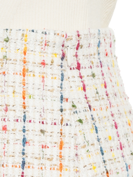 同じく光沢感が特徴の高級ツイードを使用。マルチカラーが楽しいホワイトとブラック、同系色で整えたスイートなピンクの3色展開です。