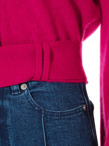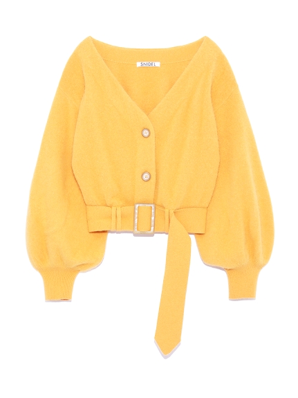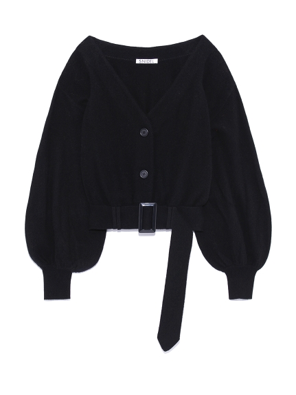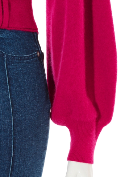 ボリューミーなバルーンスリーブが女性らしいカーディガン。