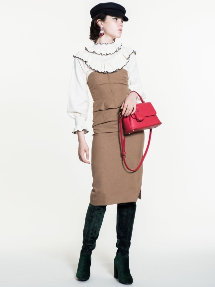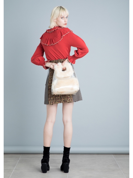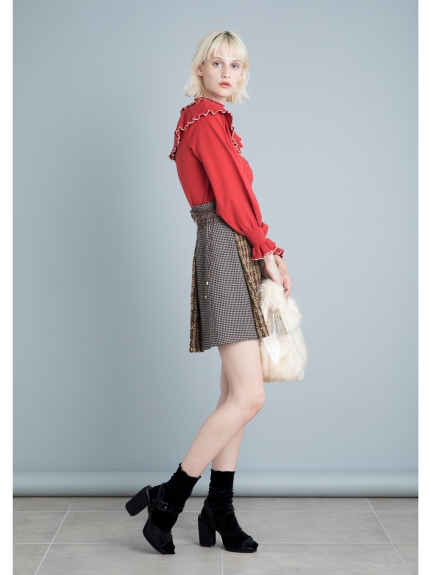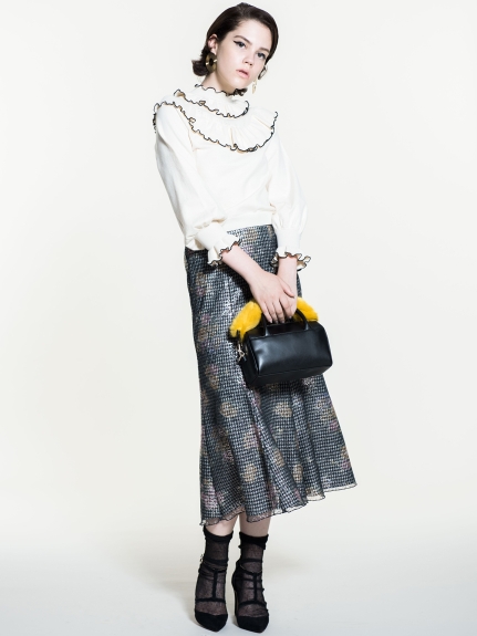 フリルを黒で縁取ったオフホワイト、ゴールドで縁取ったレッド、シルバーで縁取ったブラックの3色展開です。