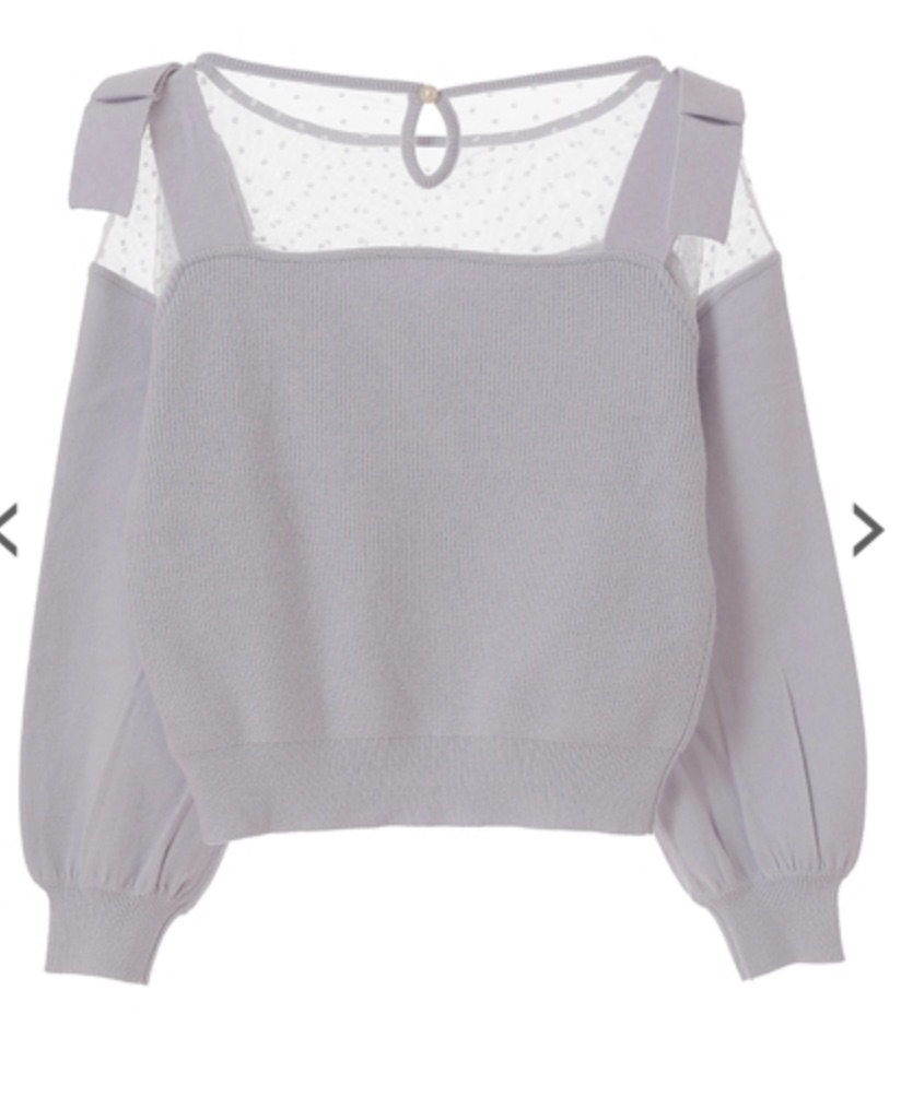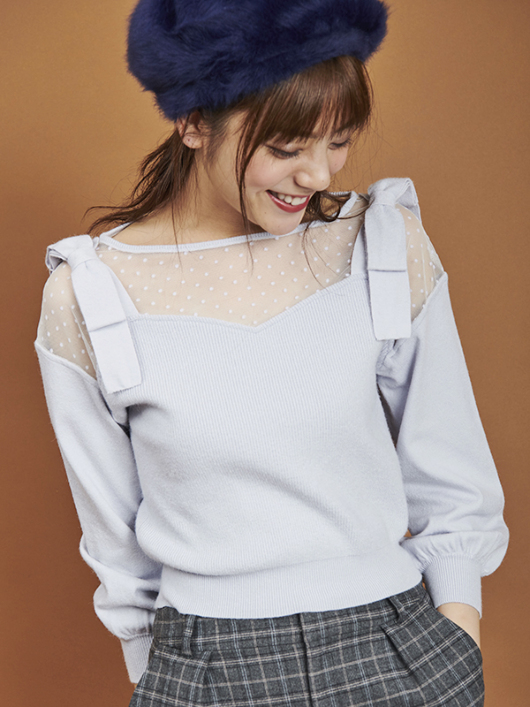 ベアトップをイメージさせる身頃のニット部分は肩のストラップ