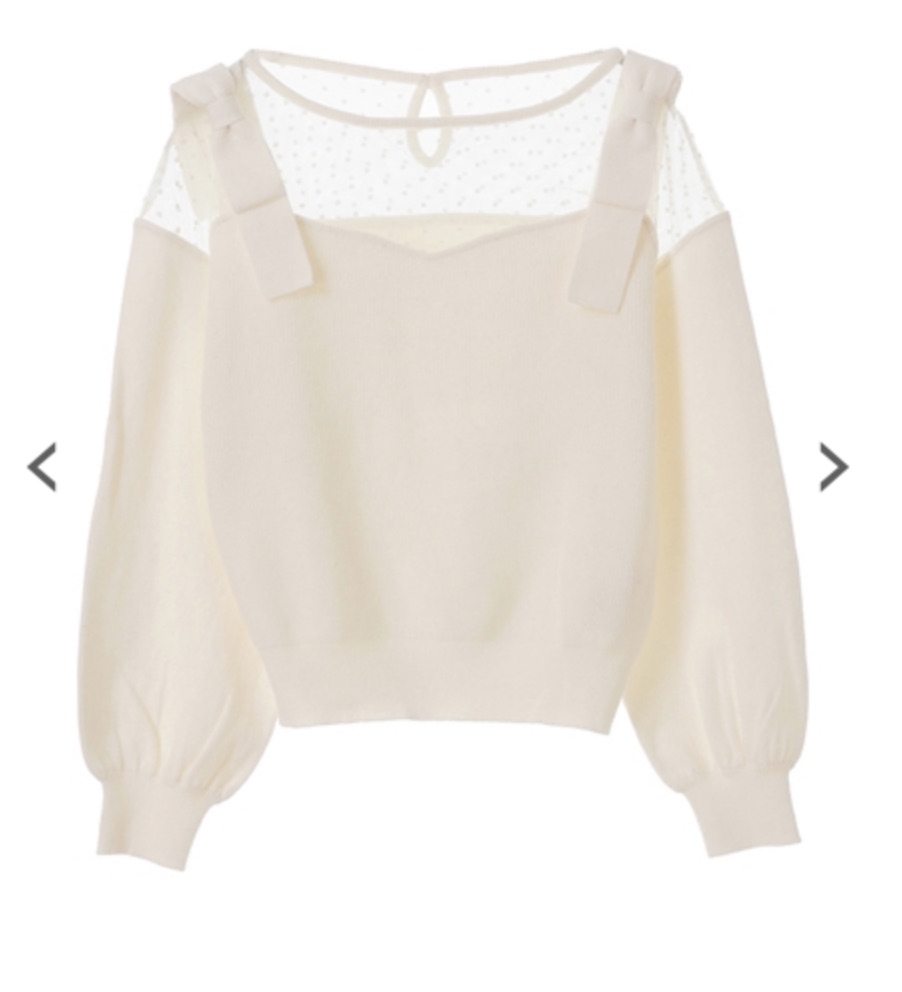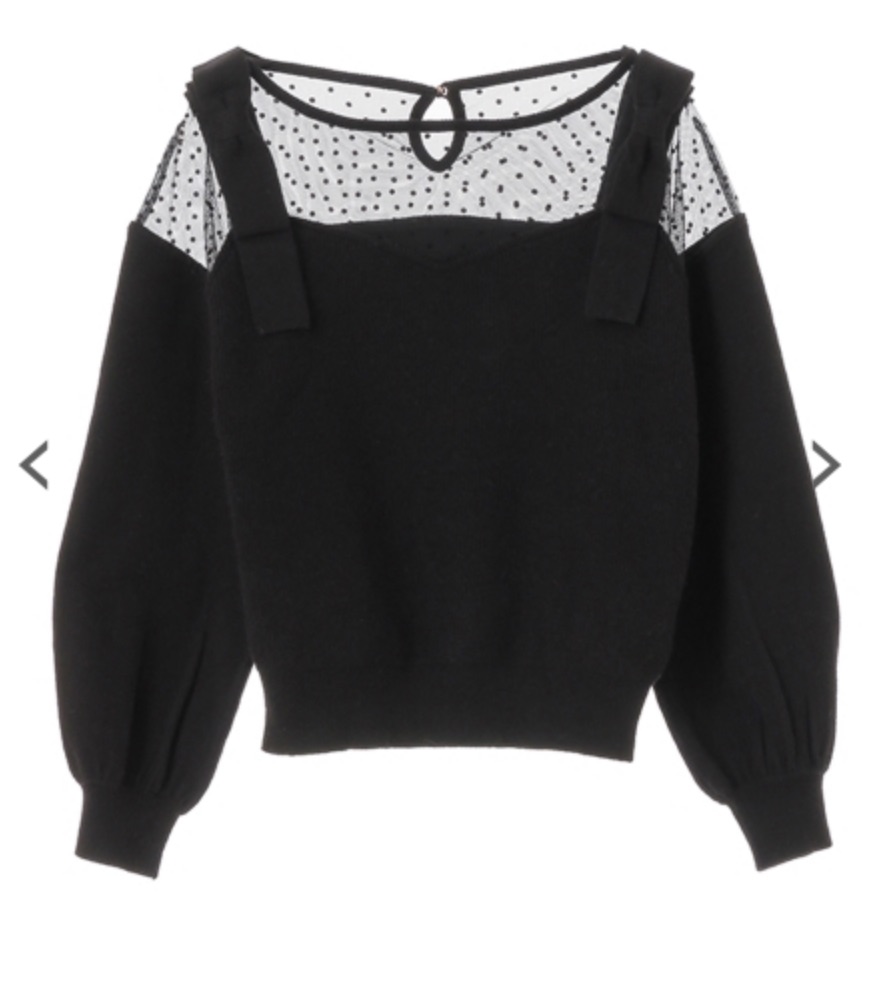 肩からデコルテにかけてドット柄が浮き上がるチュール素材は