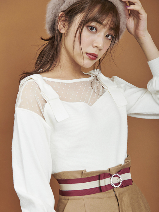 トレンドのベアトップスタイルが一枚で完成するニットが登場。