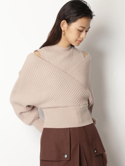 ノースリーブニットにオフショルダーニットをレイヤードしたような、ドッキングデザインのトップスをつくりました。 コンパクト丈で、ウエストはリブのテンションを強めに仕上げたので、ハイウエストボトムスとの相性は抜群。 さりげない肌見せがクールな印象に仕上げてくれます。 サイズ表記 総丈 裄丈 袖口 F 50cm 78.5cm 6.5cm