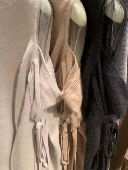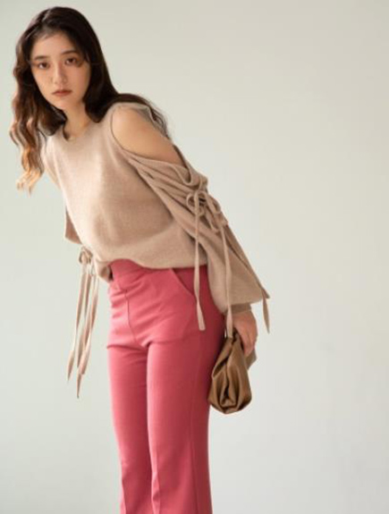 重くなりがちなニットから素肌を覗かせれば、軽やかさと抜け感が手に入ります。