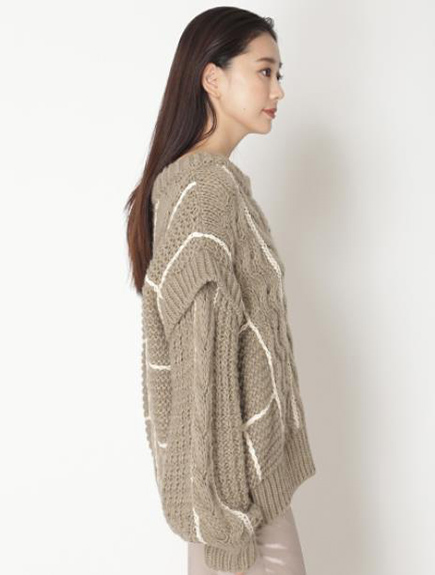 ハンドステッチケーブルニットプルオーバー