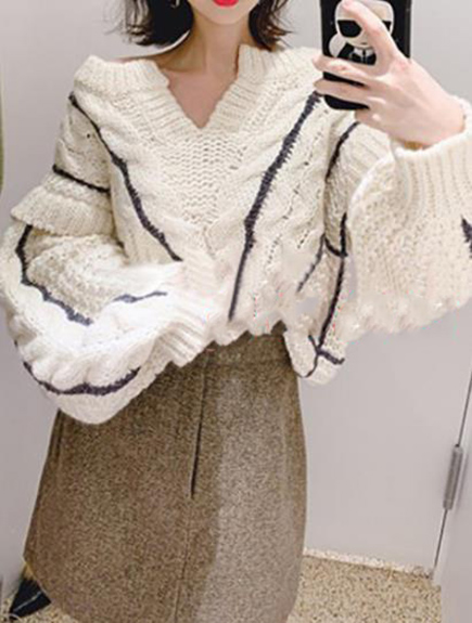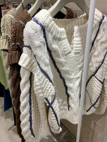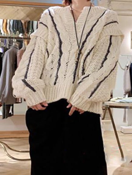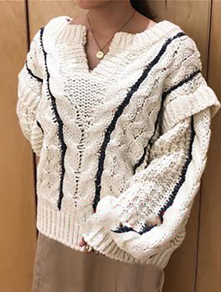 種類の違う糸で編み込んだ、ハンドステッチの刺繍がアクセントのプルオーバー。