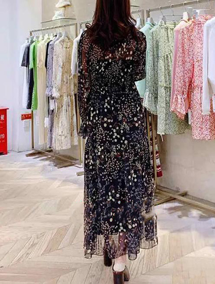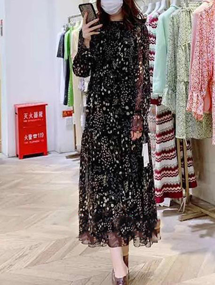 花柄に抵抗がある方でもトライしやすい、シックで華やかなワンピースが完成しました。