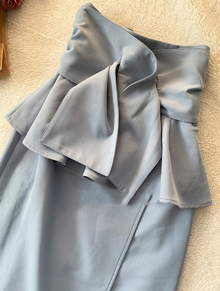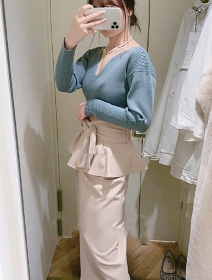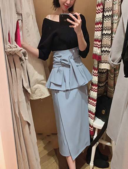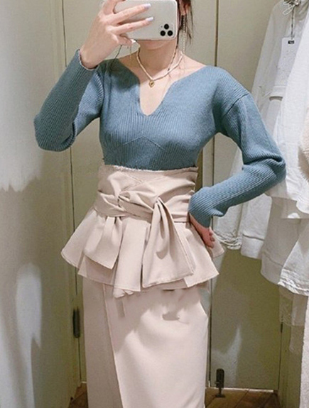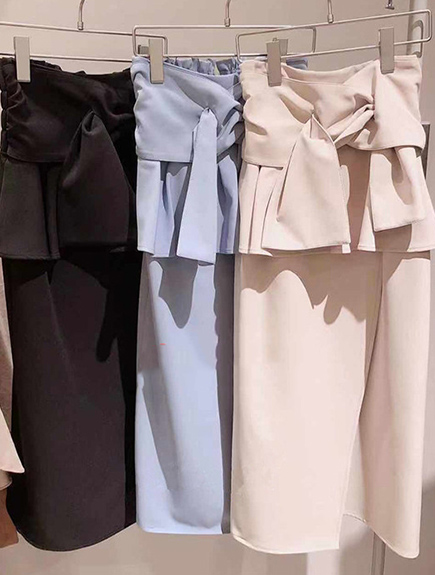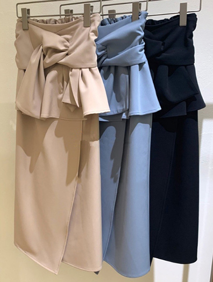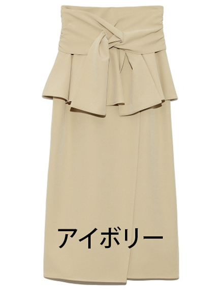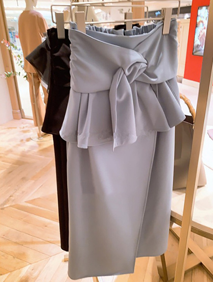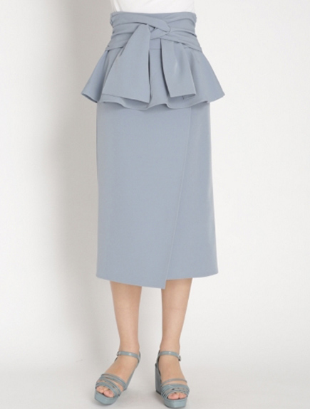 大きなリボンを前結びしたデザインが印象的なタイトスカート。