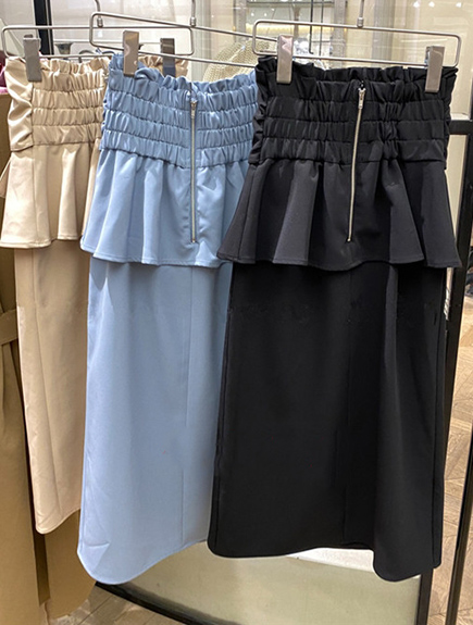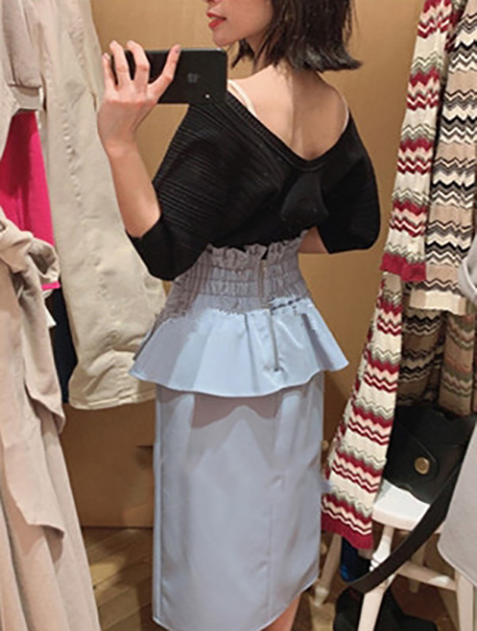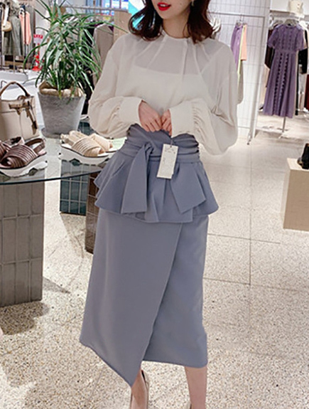 ふんだんにギャザーを寄せた立体的なペプラムが女性らしさを強調し、メリハリのあるラインをつくることでスタイルアップを叶えます。