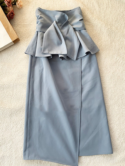 ラップ調デザインが段差のあるイレギュラーヘムを生み、特別感のある印象をプラス。