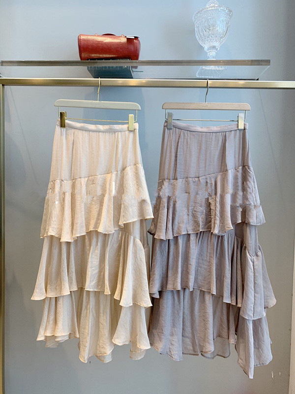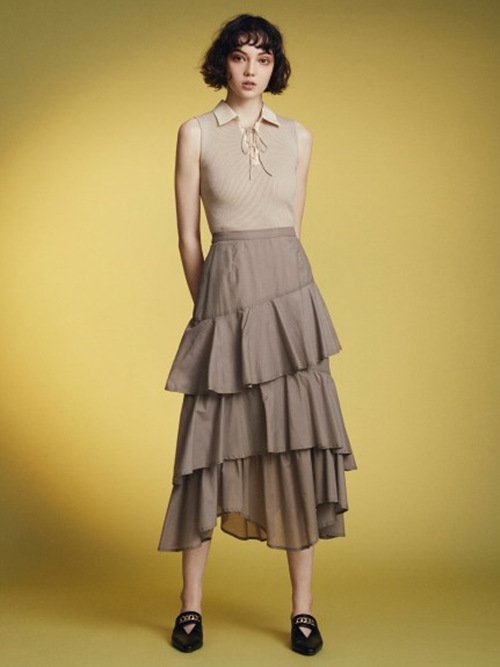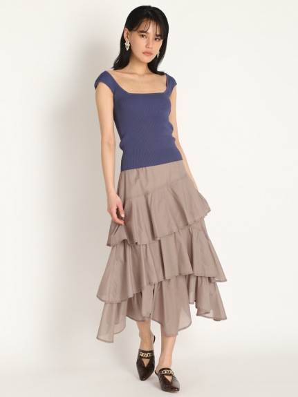 ランダムティアードが女性らしいシルエットを描くスカート。