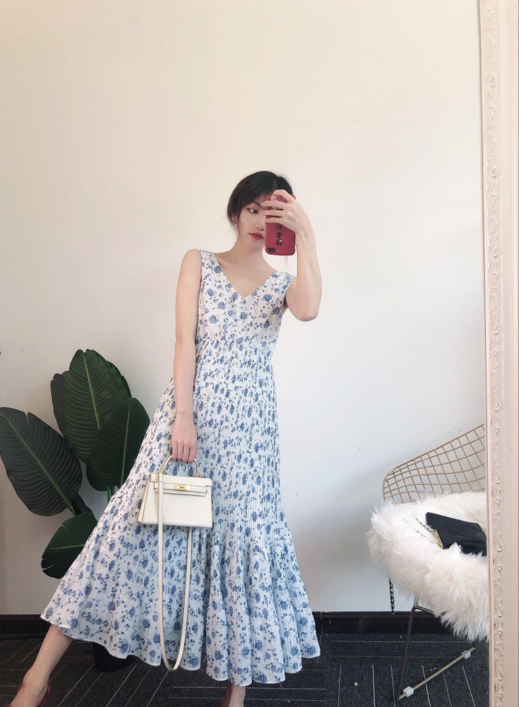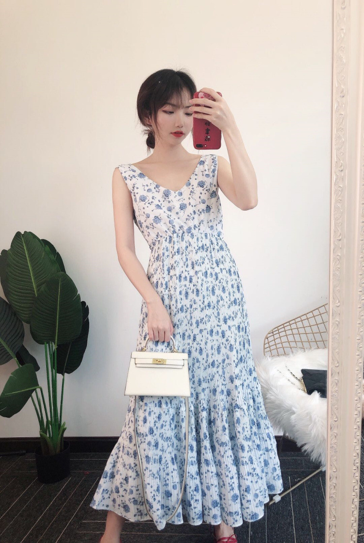 ウエストリボンベルトはフロントやバックで結ぶ事で表情を変えてお楽しみいただけます。華奢なラインを作るサマーサンダルを合わせてエレガントに。