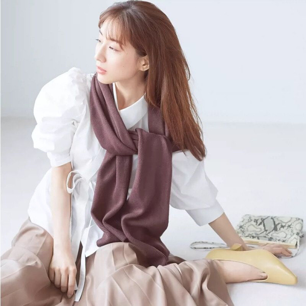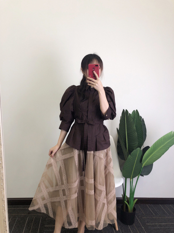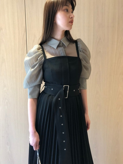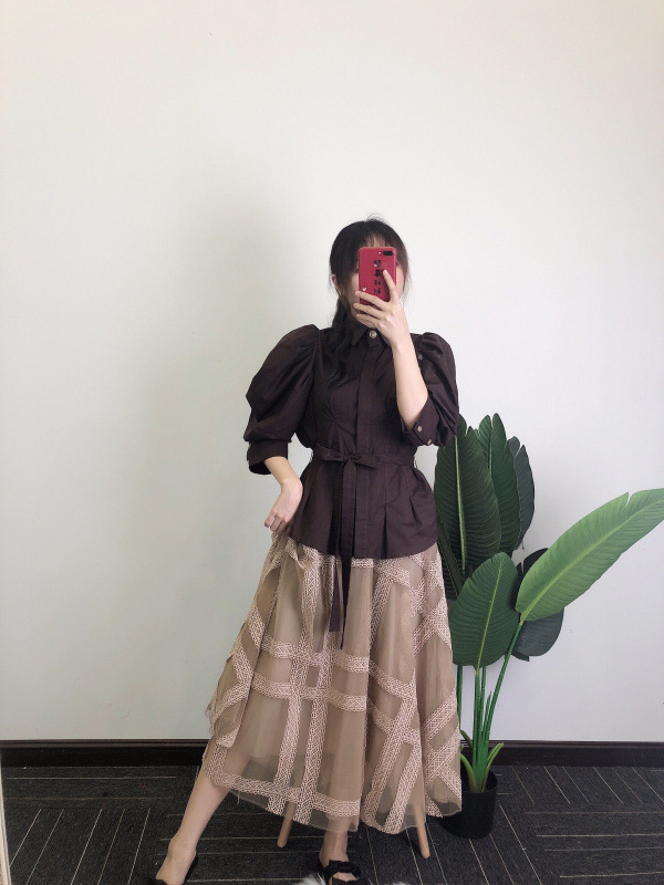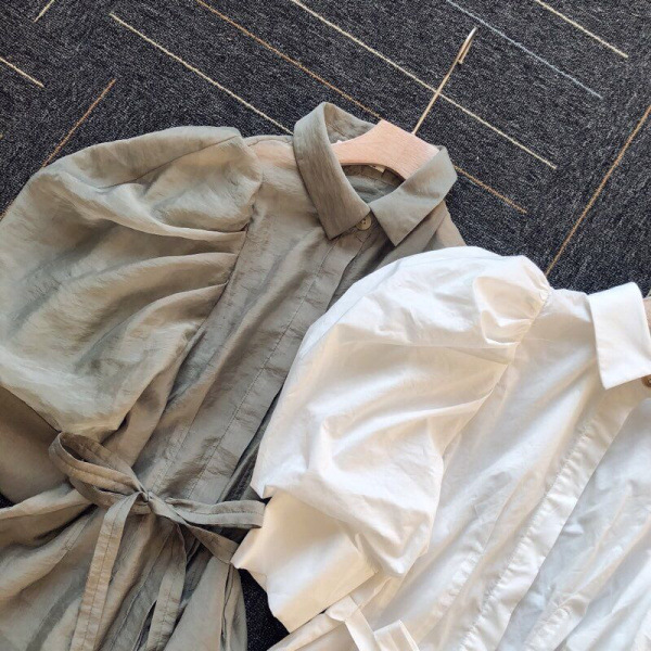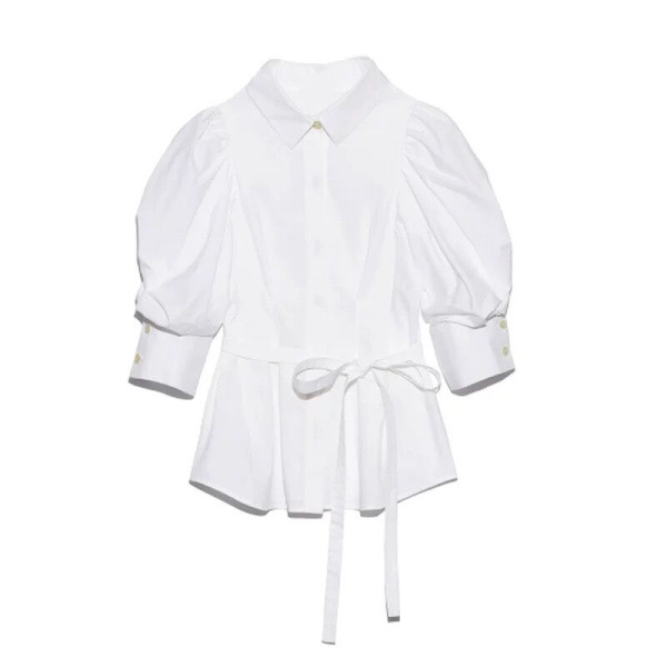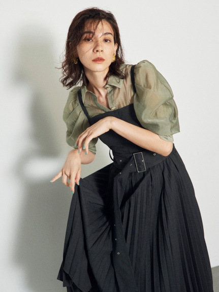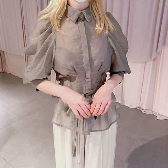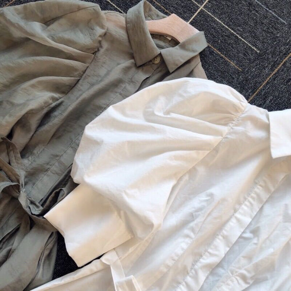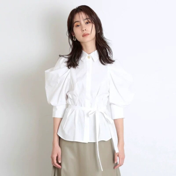 タックとギャザーで立体感を表現し、女性らしく落とし込んだパワーショルダーブラウス。ふんわりとした袖のボリュームとシンプルな身頃のデザインがバランス良く、存在感がありつつもデイリーで着回しやすい一枚が完成しました。ウエストのタックがメリハリあるシルエットをつくり、共布リボンでさらにスタイルアップを強調。IN/OUTどちらも似合う丈感で、着回し力も抜群です。