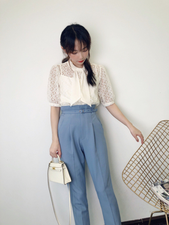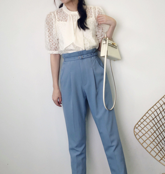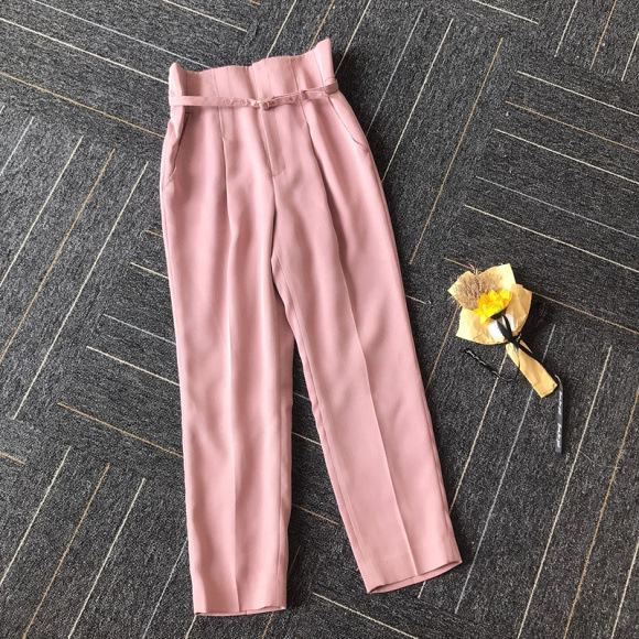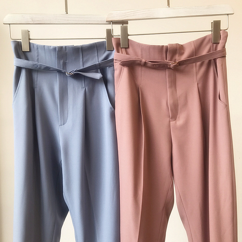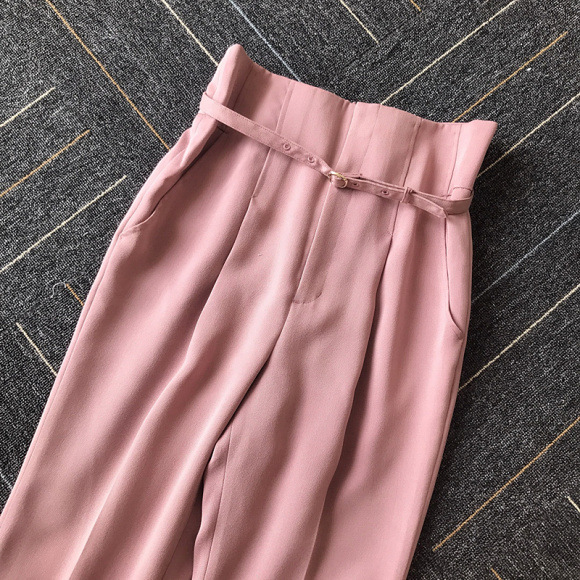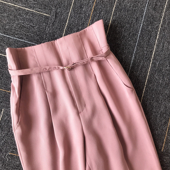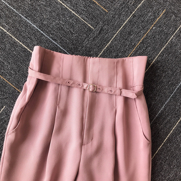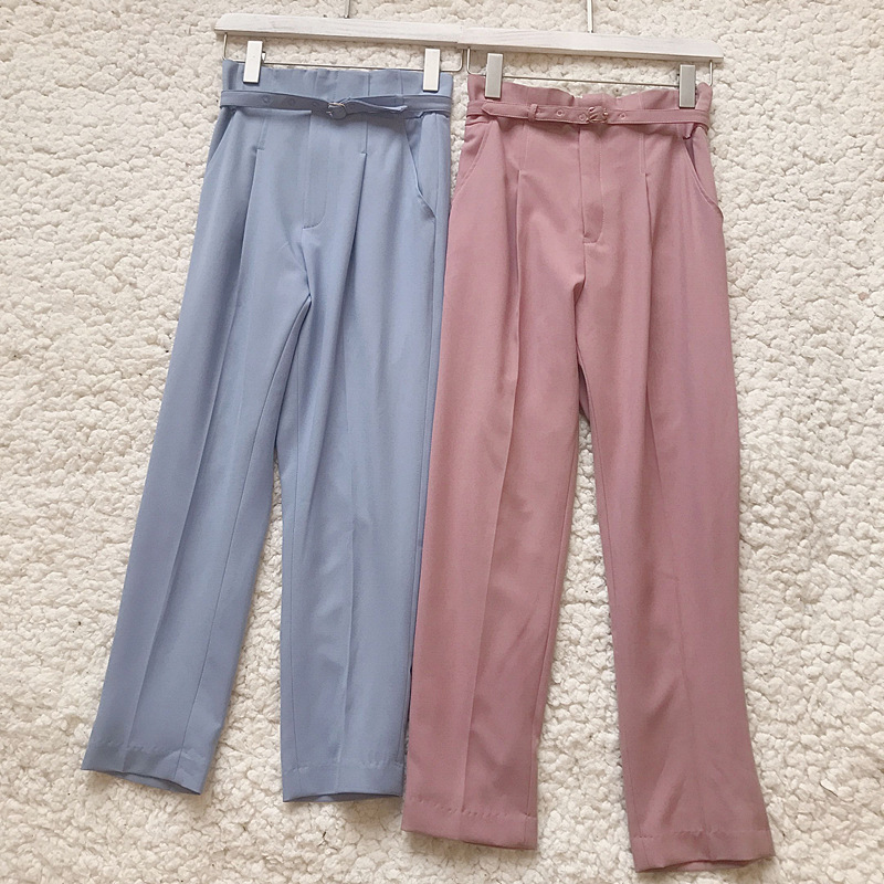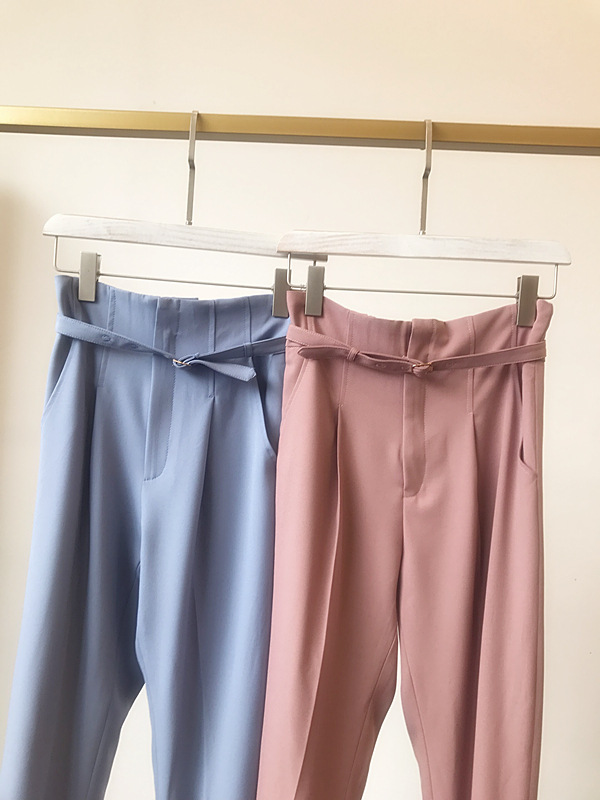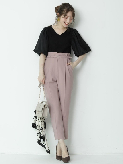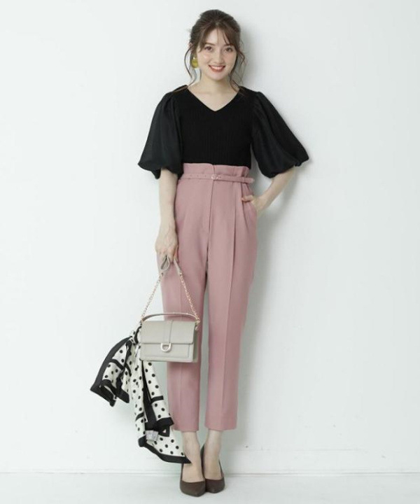 華奢なベルト付きデザインで女性らしさを引き立てる、上品クラシカルなパンツ。