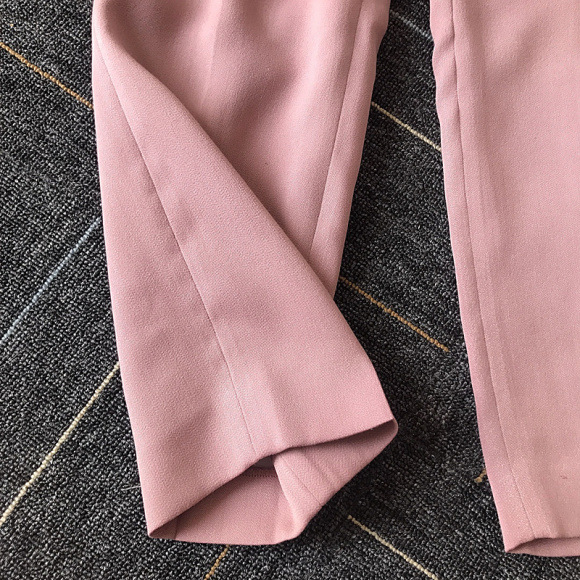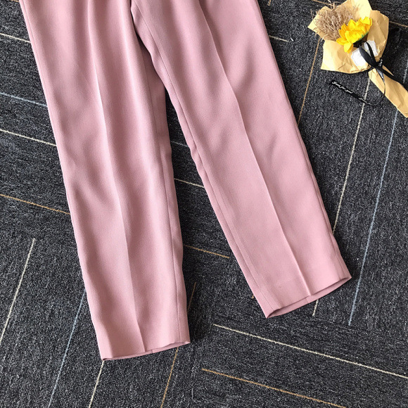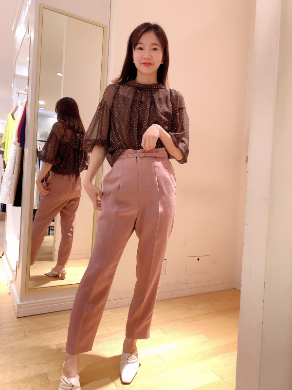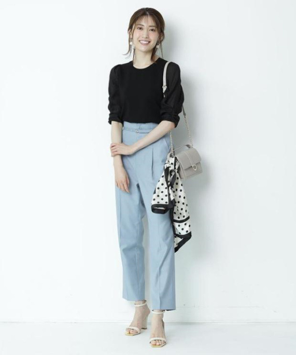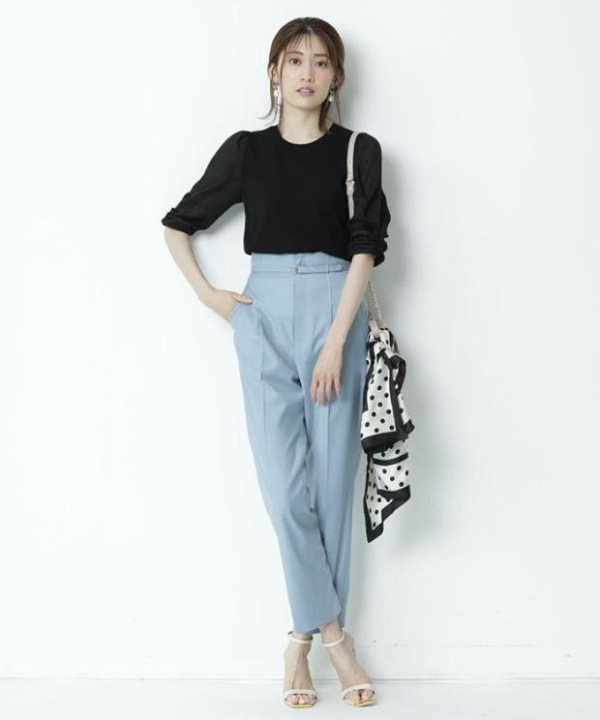 旬なハイウエスト仕様で脚長効果も高まるうえ、裾に向かって細くなったテーパードシルエットで、脚線美アピールも可能です。