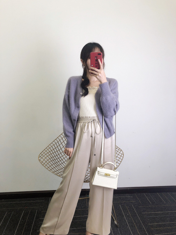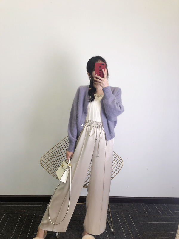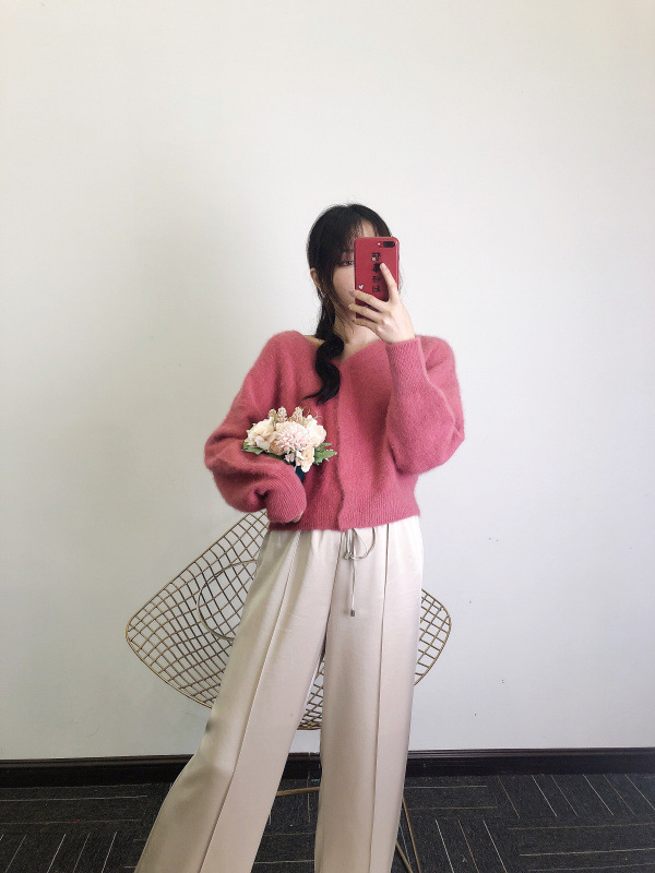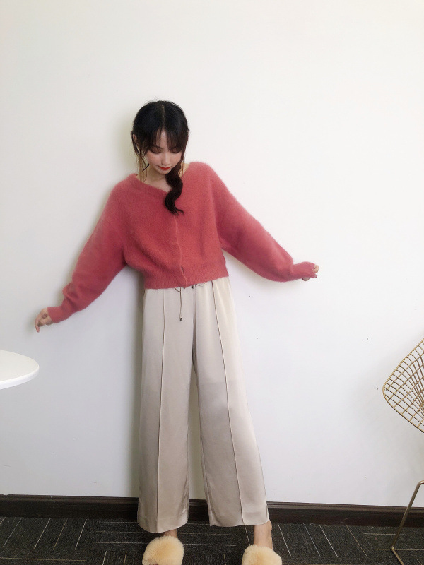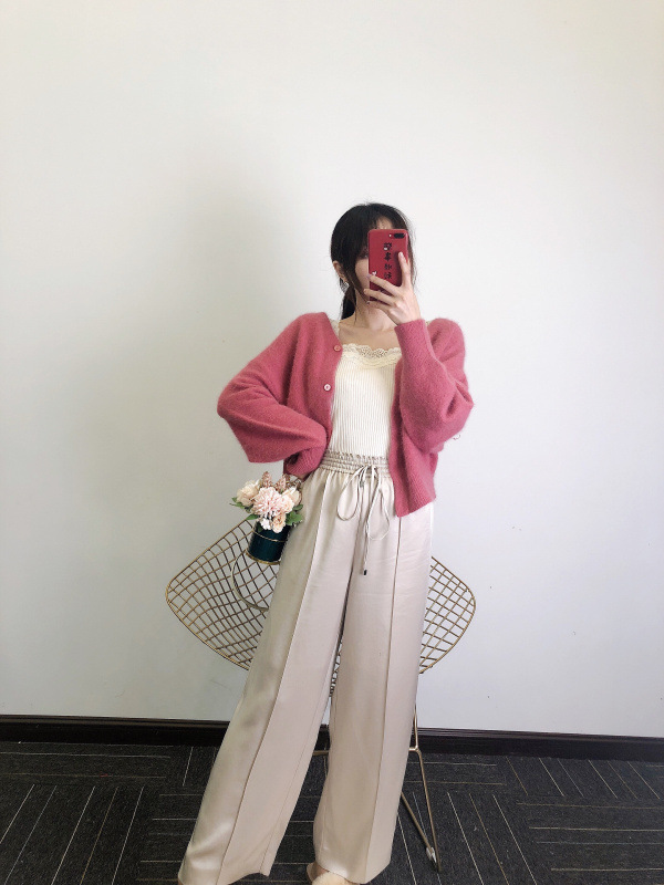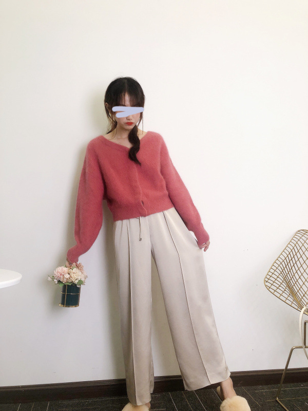 ラクーンの心地良い肌触りと、どんなシーンにもマッチする万能なルックスが魅力のショートカーディガン。カジュアル見えを防ぐため、ボタンが隠れる比翼仕立てでフロントをシンプルに仕上げました。ボレロ感覚で着用いただけるショート丈はバランスが取りやすく、トップスとしての着こなしもおすすめ。ドロップショルダーが大人のラフさを演出し、自然な抜き襟デザインで女性らしさを引き立てました。