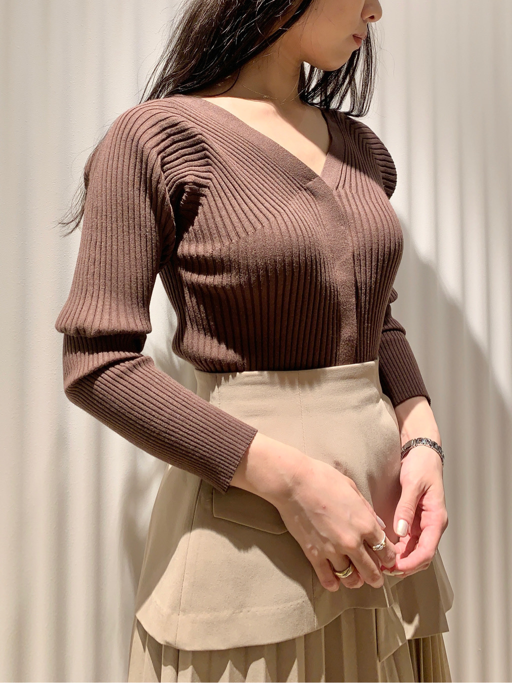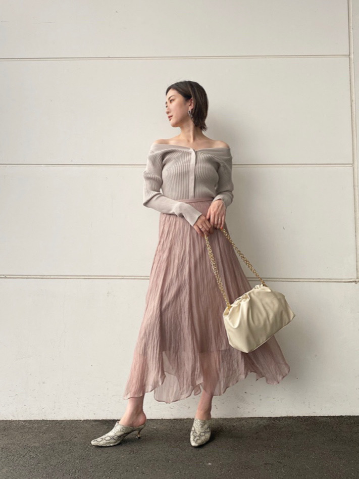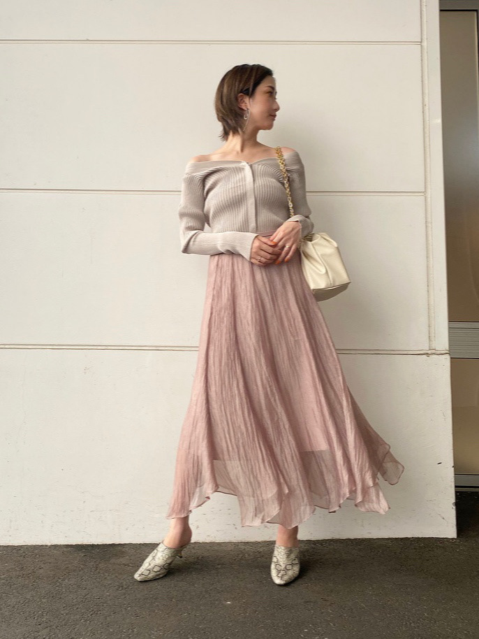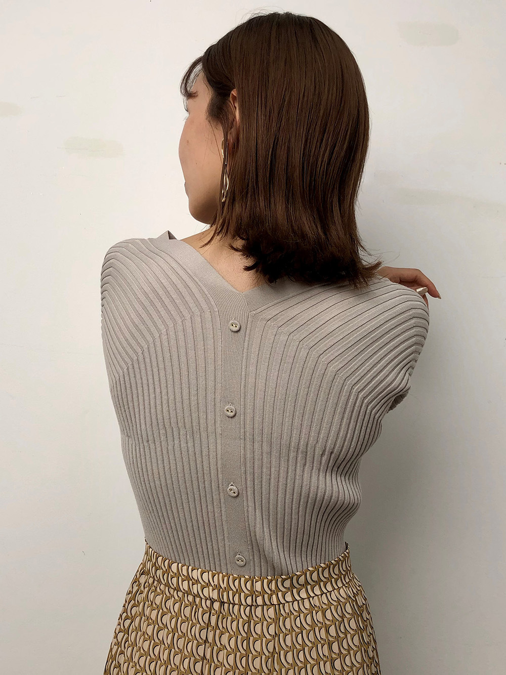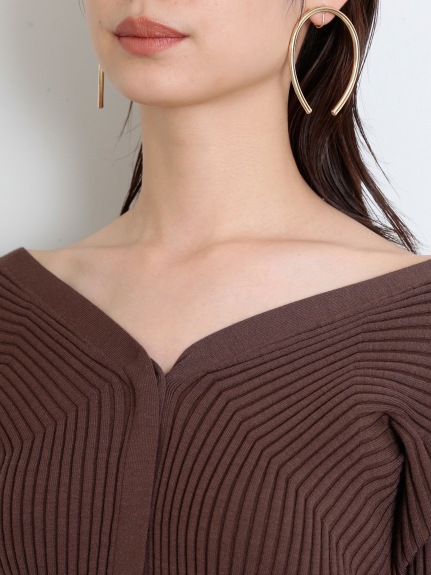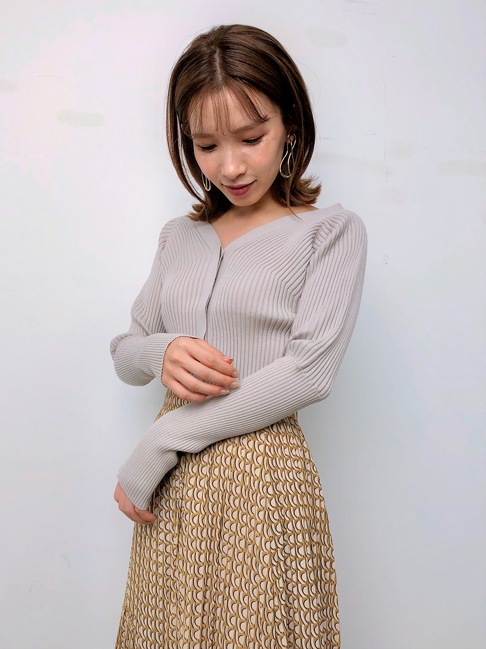 前後着用可能なオフショルダーカーディガン。大胆にカッティングしたネックラインがデコルテに艶を与え、色香纏う大人な装いを叶えます。フロントはボタンを隠す比翼デザインですっきりと仕上げ、コーディネートの邪魔をしないシンプルなデザインに。バックスタイルにはボタンをあしらい、フロントとは対照的な印象的な後ろ姿で、ギャップあるスタイリングを実現しました。ジャンパースカートのインナーやトップスとしても使い勝手のいい一枚です。