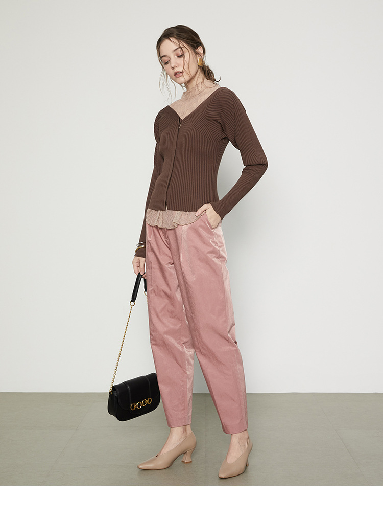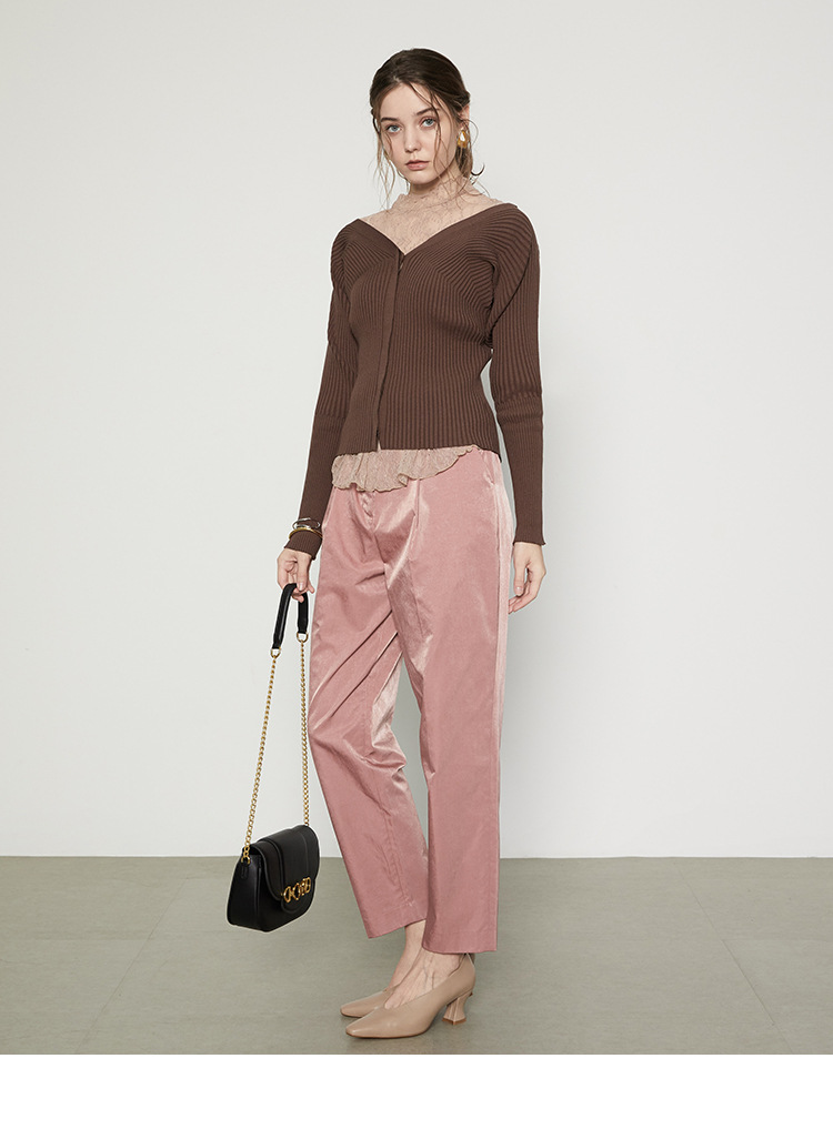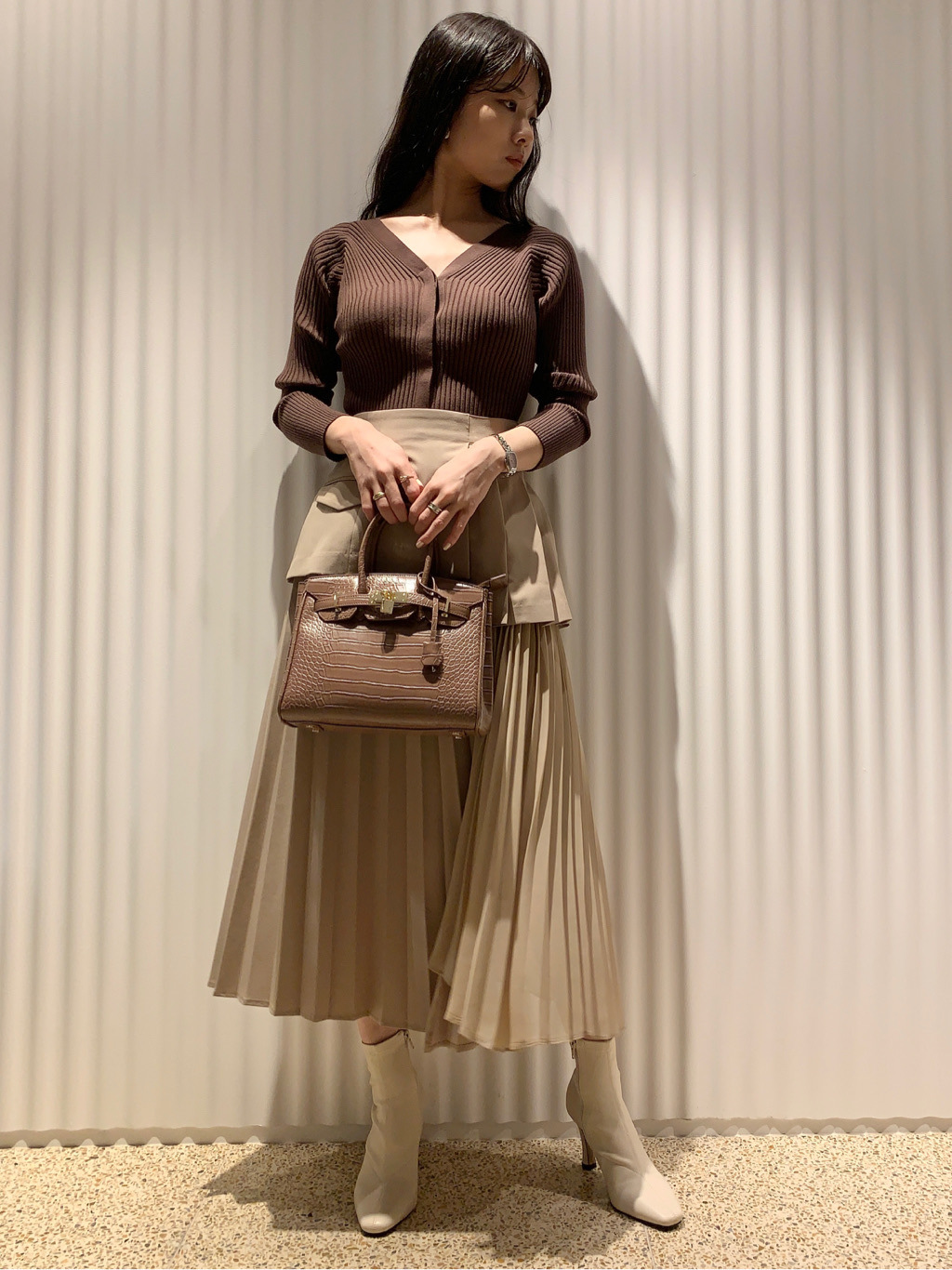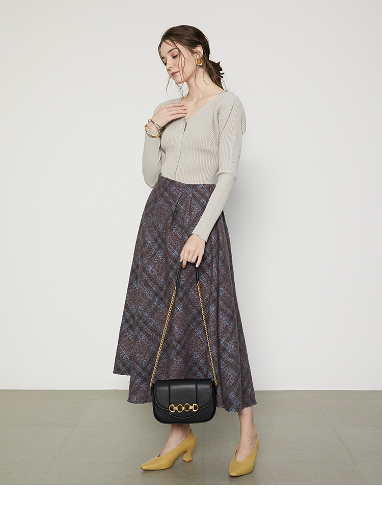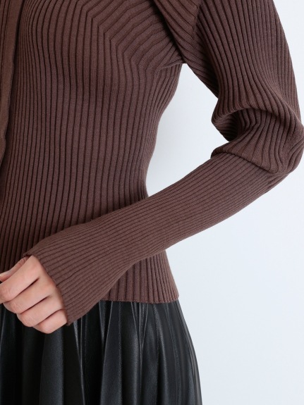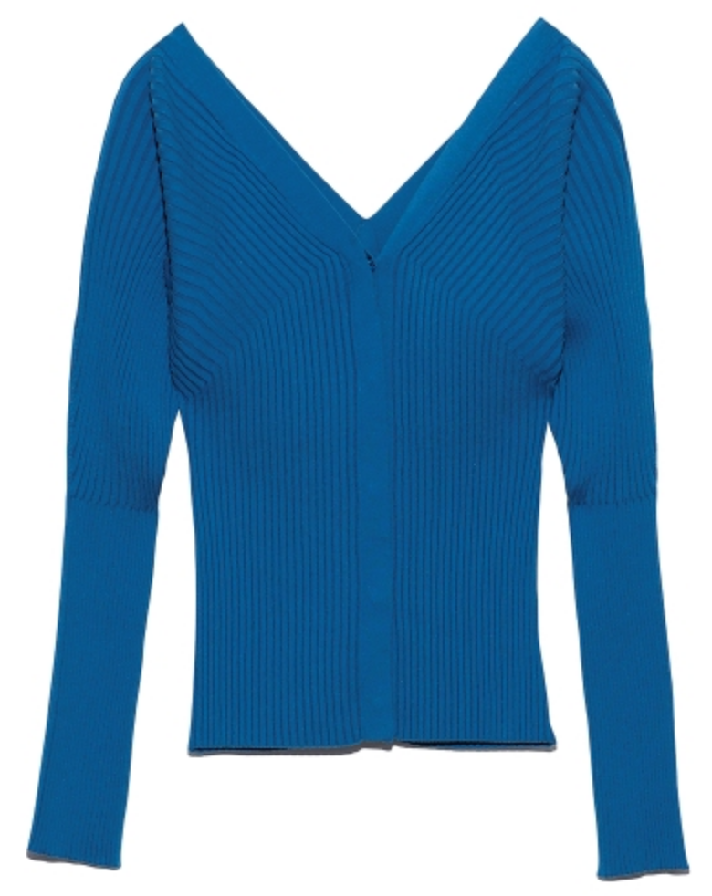 前後着用可能なオフショルダーカーディガン。大胆にカッティングしたネックラインがデコルテに艶を与え、色香纏う大人な装いを叶えます。フロントはボタンを隠す比翼デザインですっきりと仕上げ、コーディネートの邪魔をしないシンプルなデザインに。バックスタイルにはボタンをあしらい、フロントとは対照的な印象的な後ろ姿で、ギャップあるスタイリングを実現しました。ジャンパースカートのインナーやトップスとしても使い勝手のいい一枚です。