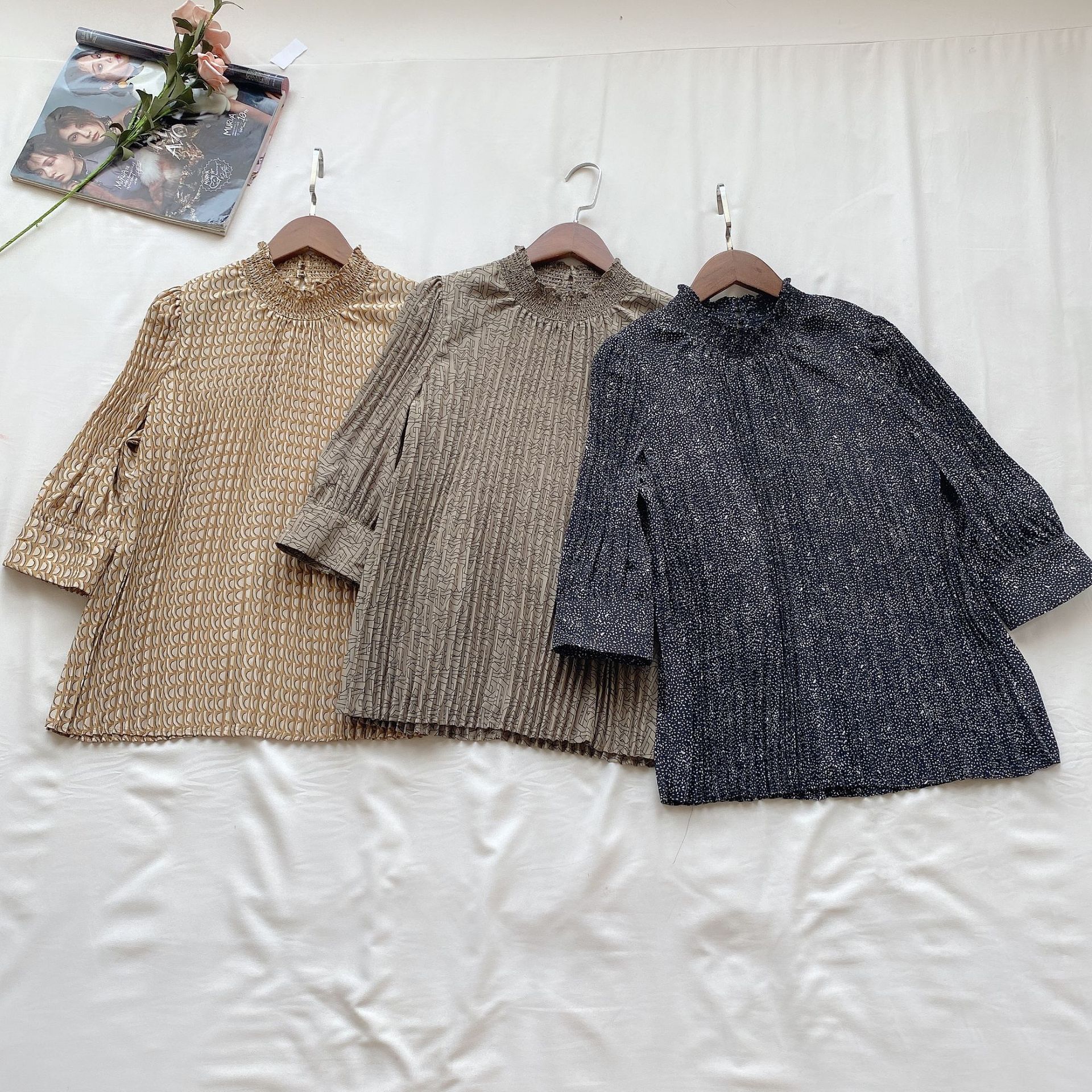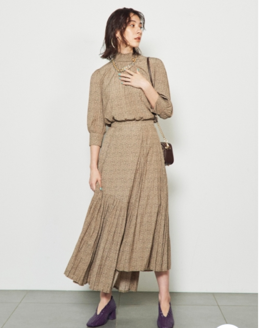プリーツプリントブラウス