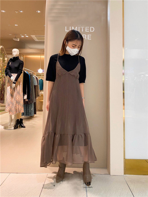 ニットワンピースとキャミソールワンピースをセットにした、「SNIDEL」定番人気のレイヤードアイテムがこの秋も登場。立体感を持たせたニットワンピースは、首の詰まったネックラインがモードな雰囲気。ふっくらとした生地は身体のラインを拾いすぎず、一枚でも安心して着用いただけます。シアー素材のキャミワンピースは、プリーツや裾の切り替えなど、細部のディティールにこだわりデザイン性を追求しました。ウエストから広がるフレアが優美なシルエットを描き、繊細な印象でフェミニンムードを高めます。