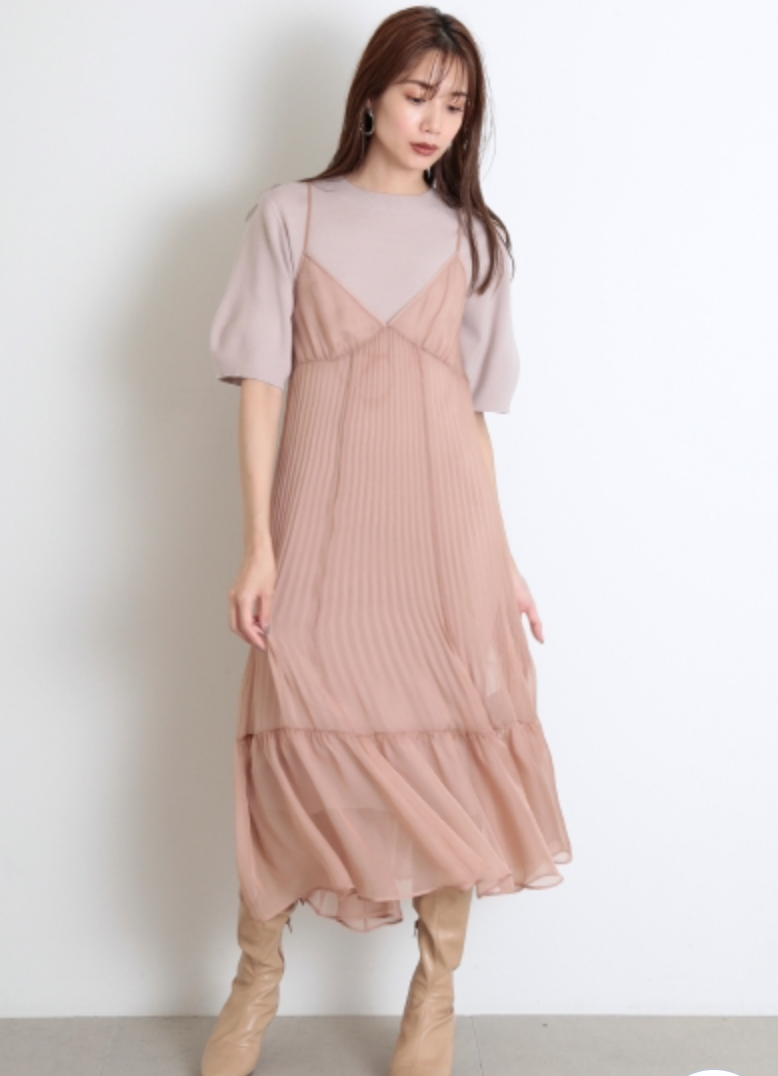 シアーキャミレイヤードニットワンピース