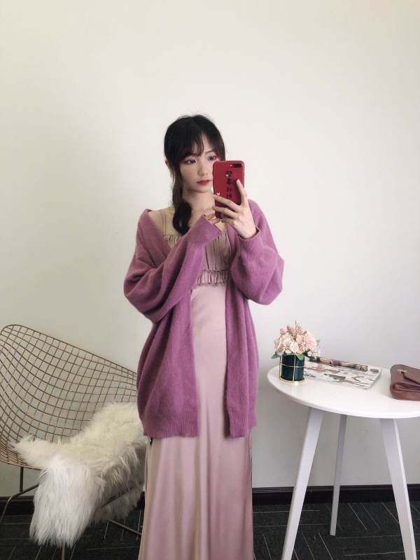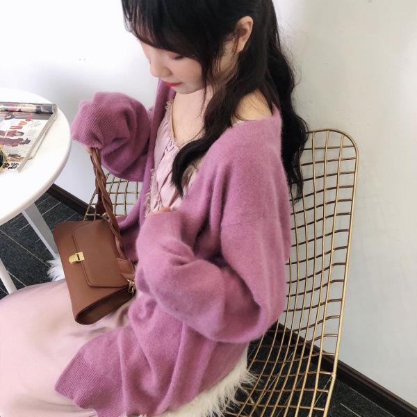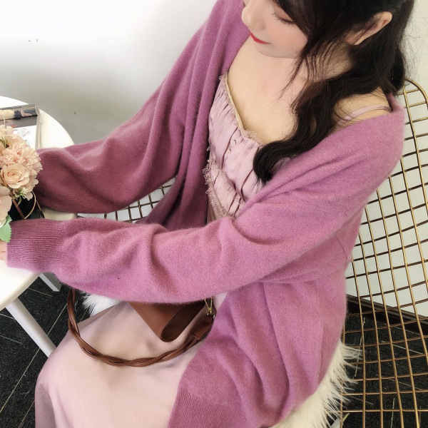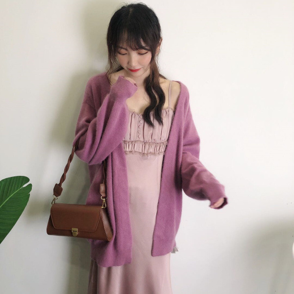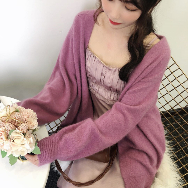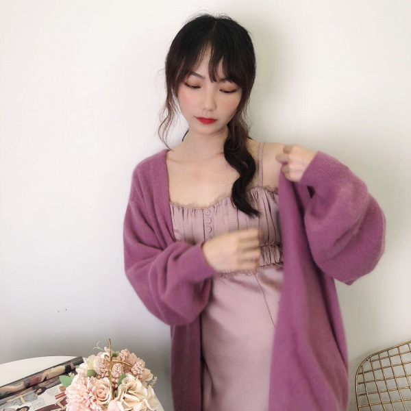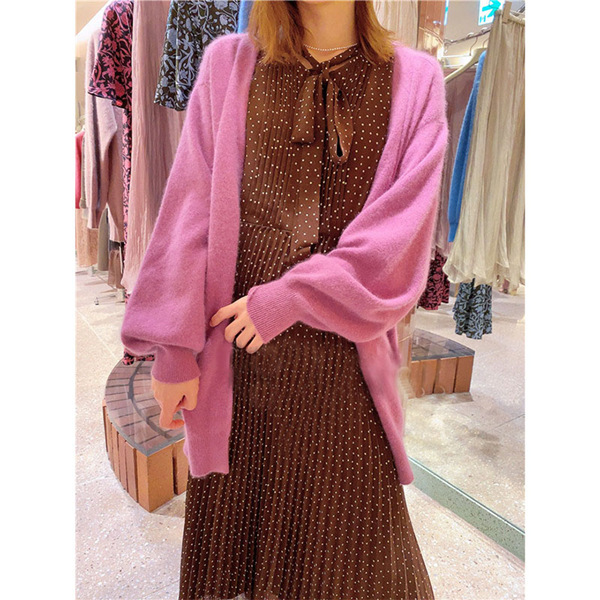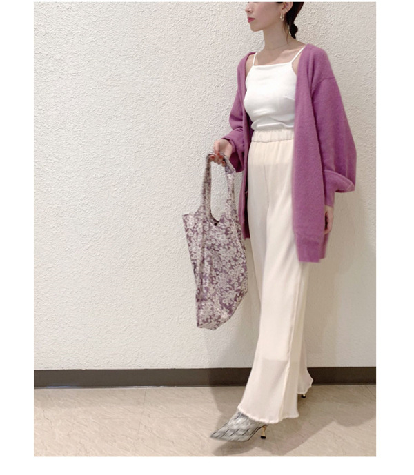 鮮やかなカラーが目を惹くニットカーディガンは、起毛感のあるルックスとルージーな雰囲気に女性らしさが漂います。ゆったりと肩を落としたシルエットやお尻の隠れるミドル丈で、ナチュラルな雰囲気と愛らしさをバランス良く表現しました。ボタンレスのデザインはさっと羽織るだけでこなれ感を演出でき、秋のライトアウターとしても活躍します。