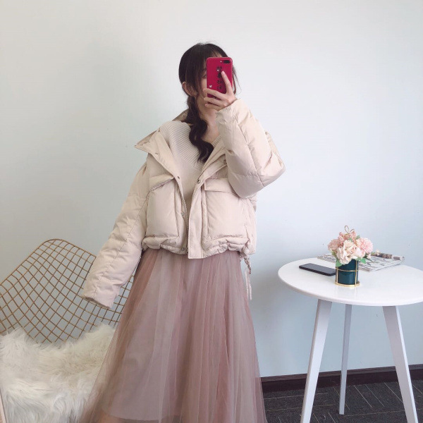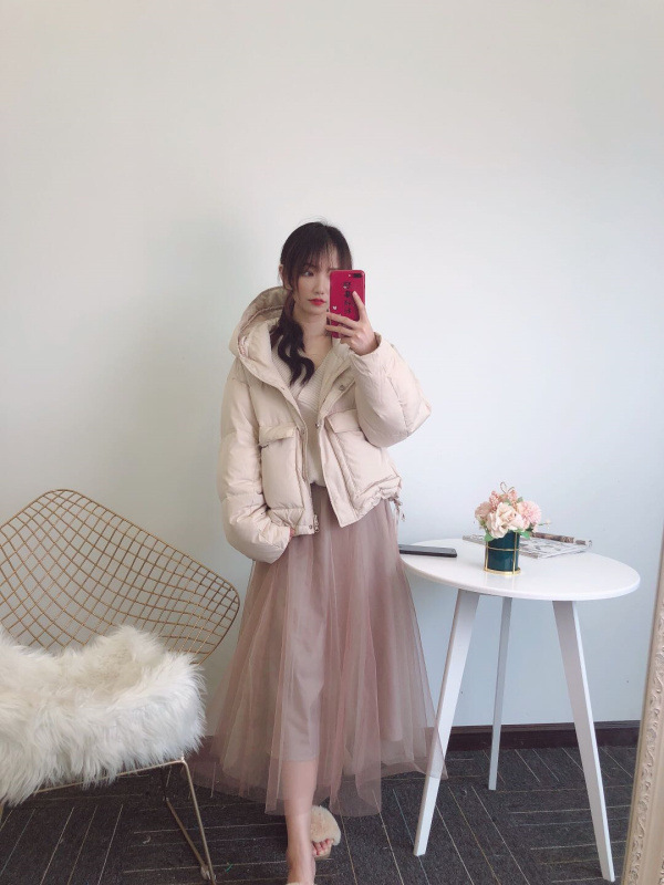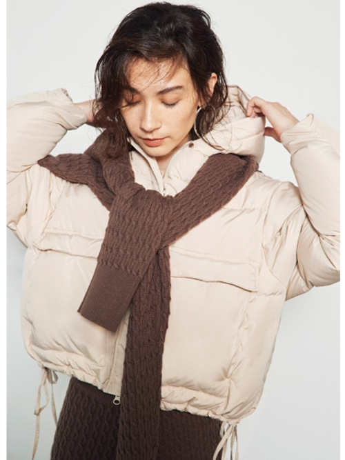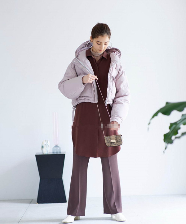 ダウンらしいボリューム感が出るよう、表地にはハリのあるリサイクルポリエステルを使用しました。内側には上質なフレンチダウンを使用。抜群の保温性を発揮し、柔軟性や放湿性に優れているのが特徴です。ベージュ、ラベンダー、ミントの、ニュアンスカラー3色をご用意しました。