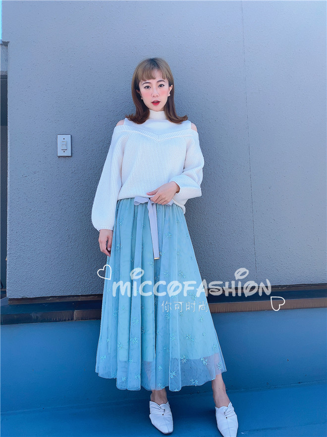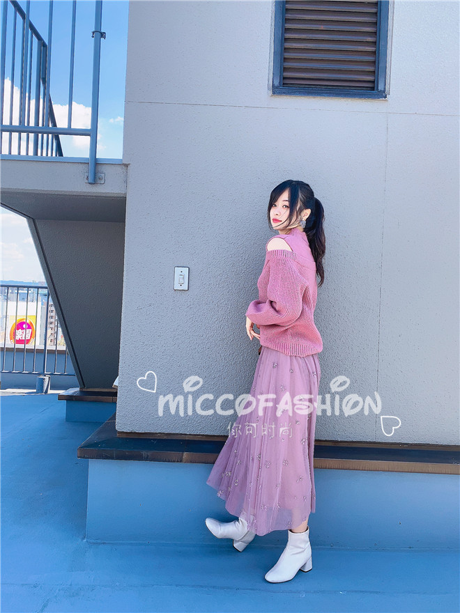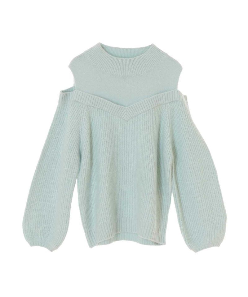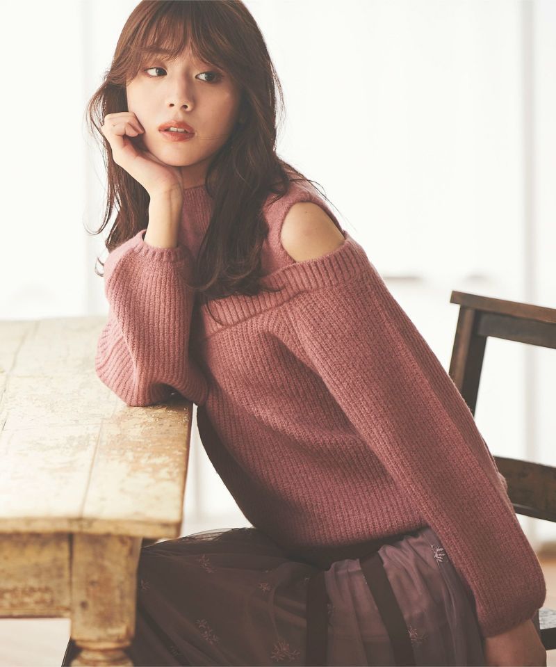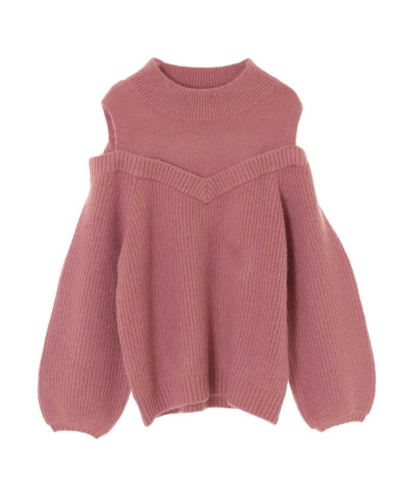 ノースリーブニットとざっくりとした長袖ニットが一枚になったデザインは、オープンショルダーからさり気ない肌見で色っぽさをプラス。