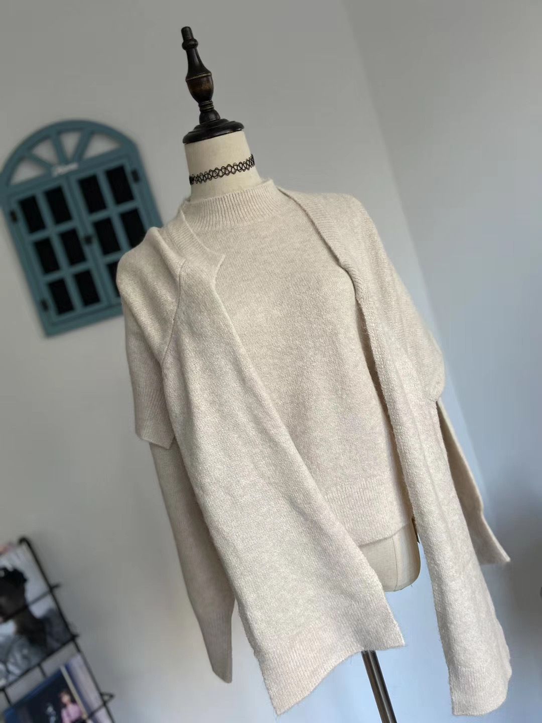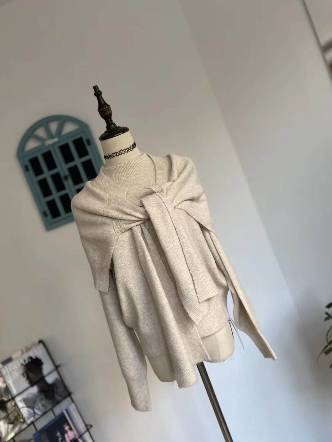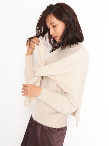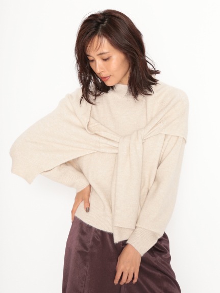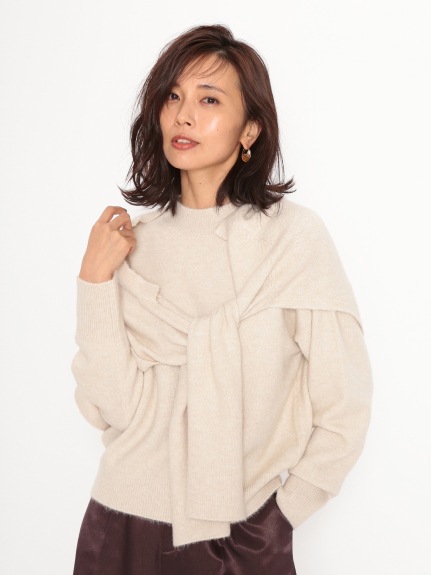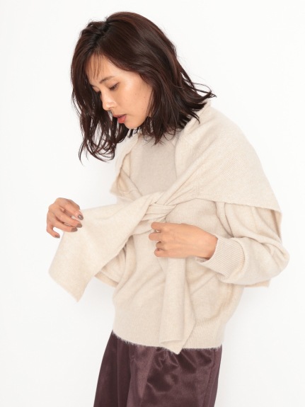 トレンドの肩巻きスタイルが叶う、プルオーバーとカーディガン風ショールのセットアイテム。レイヤード専用にデザインしたショールは巻いた際のシルエットにこだわり、一枚仕様なので結び目がもたつかず、ラフに纏ってもすっきりとしたスタイルがきまります。シンプルながら洒落感は抜群に、コーディネートに今季らしい新鮮さを呼び込みます。