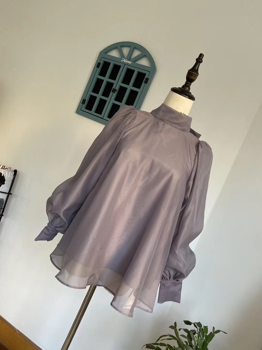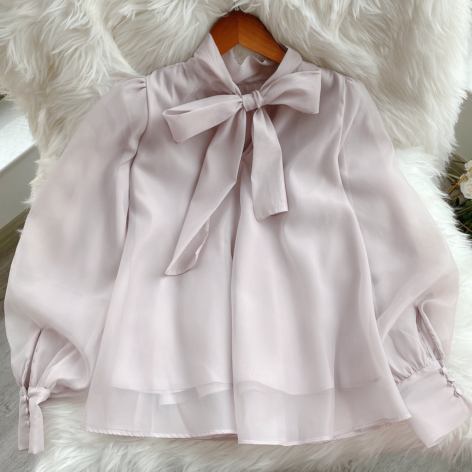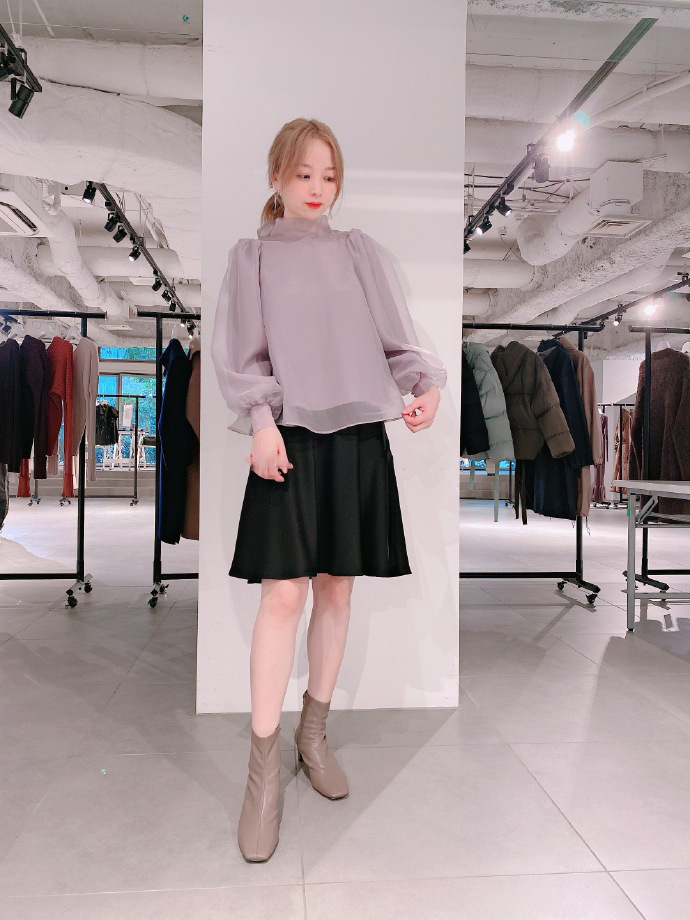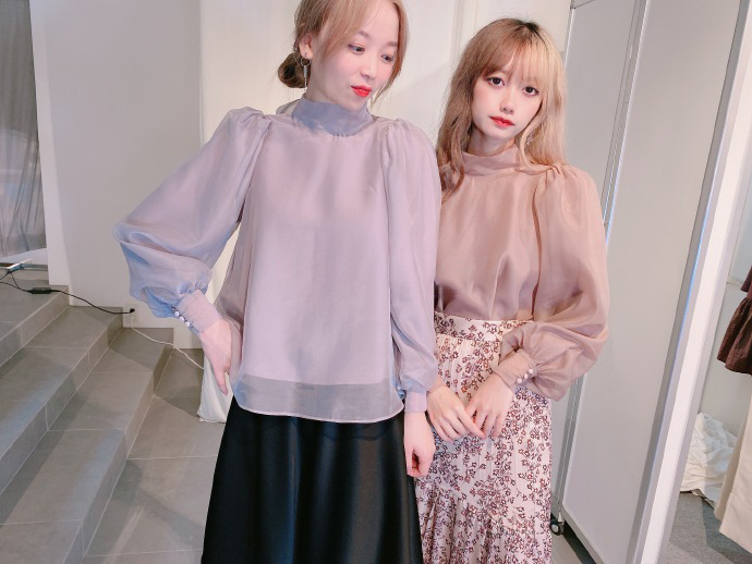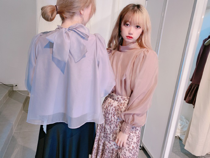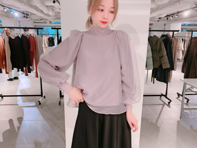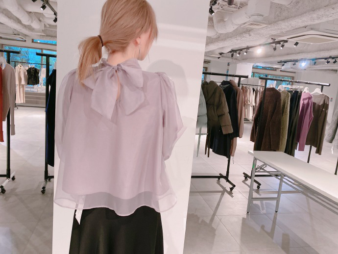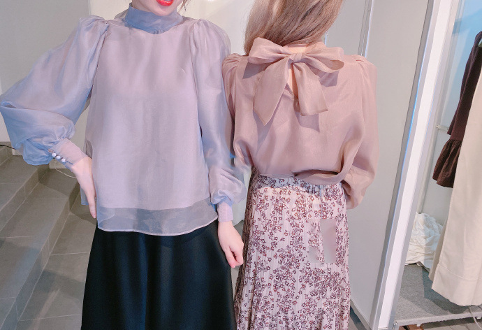 重くなりがちな秋冬コーディネートの引き算アイテムとして活躍するオーガンジーブラウス。内側に挟み込みで裏地をつけ、インナーを合わせて寒い冬も着やすいよう工夫しました。立体的なパフスリーブとバックリボンが女性らしく、トレンドのシースルーがコーディネートに抜けと色香をもたらします。パンツスタイルでカジュアルにも、スカートを合わせてレディにも、様々な表情でスタイリングを華やかに彩る一枚です。