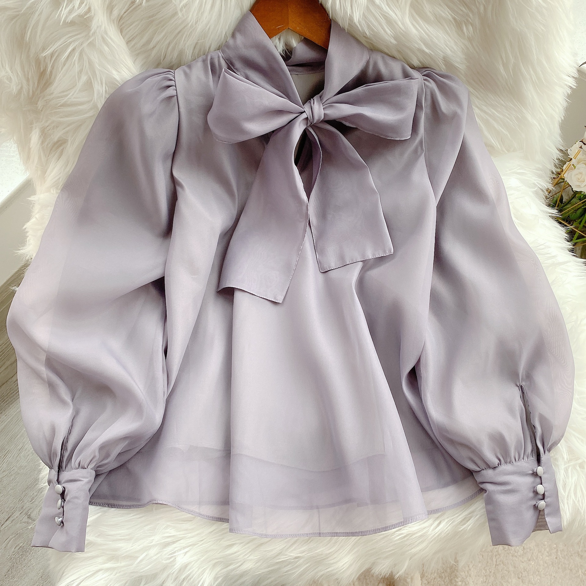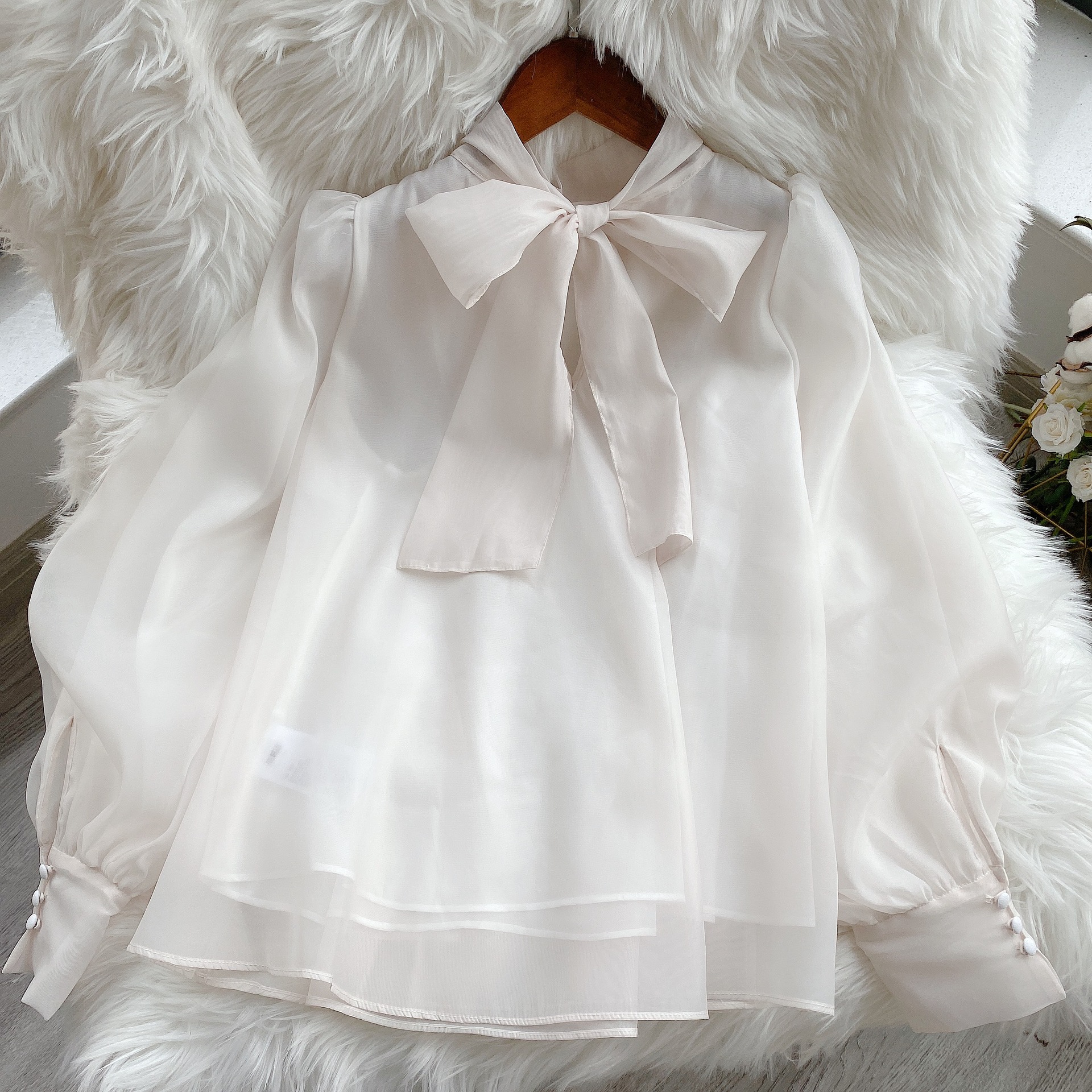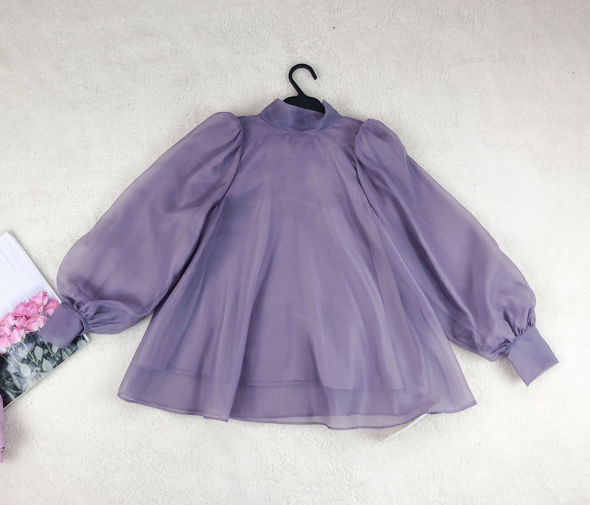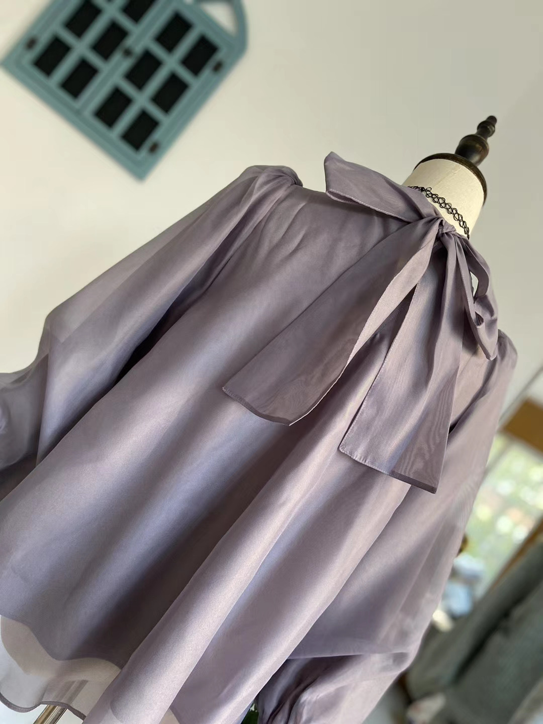 重くなりがちな秋冬コーディネートの引き算アイテムとして活躍するオーガンジーブラウス。内側に挟み込みで裏地をつけ、インナーを合わせて寒い冬も着やすいよう工夫しました。立体的なパフスリーブとバックリボンが女性らしく、トレンドのシースルーがコーディネートに抜けと色香をもたらします。パンツスタイルでカジュアルにも、スカートを合わせてレディにも、様々な表情でスタイリングを華やかに彩る一枚です。