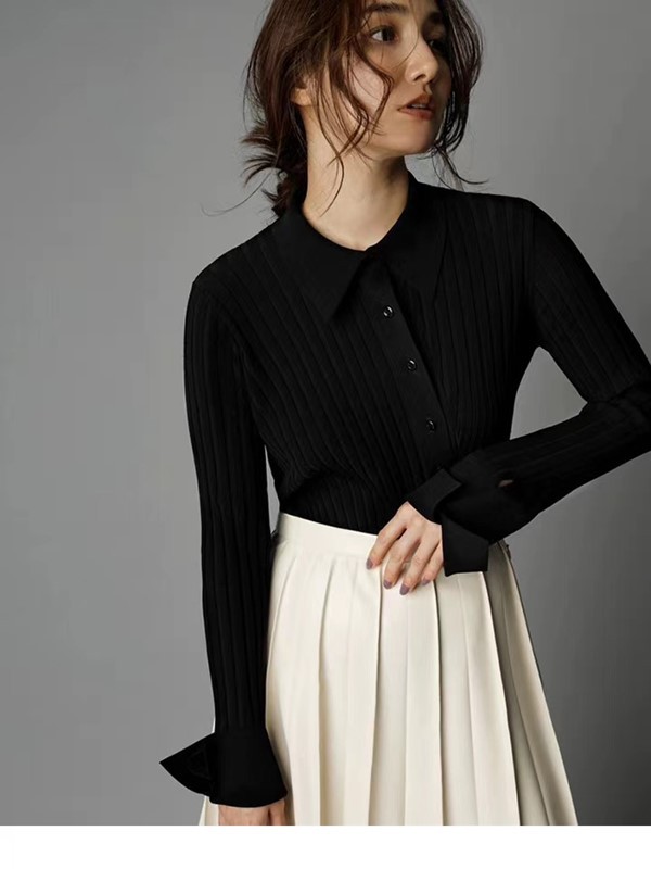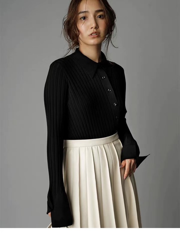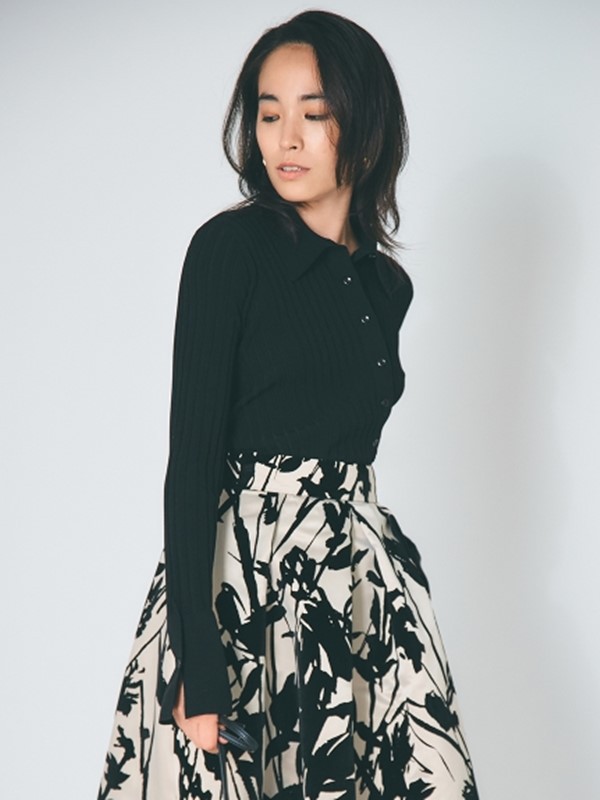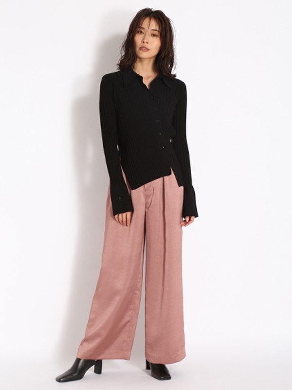 ナローシルエットのスカート、光沢のあるサテンパンツなど、ニュアンスあるボトムスと合わせて女性らしい印象を高めるコーディネートがお勧めです。