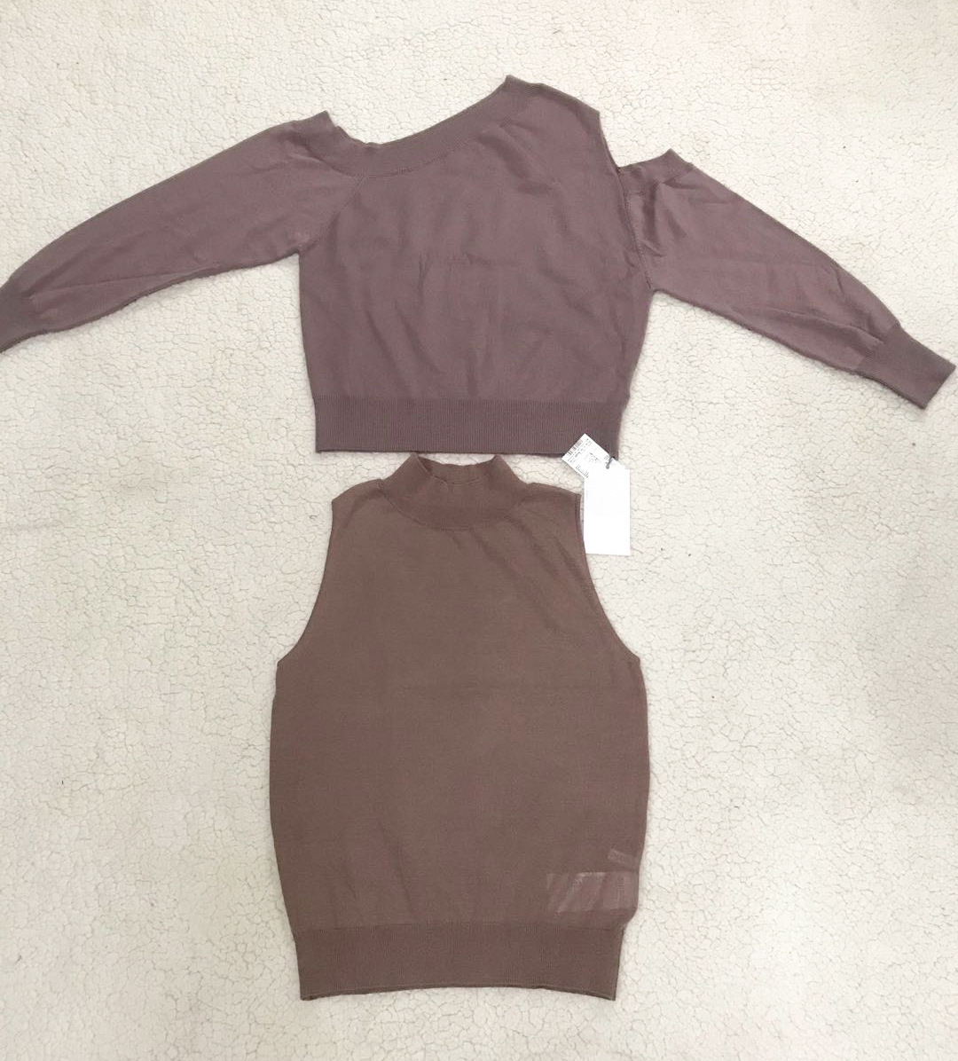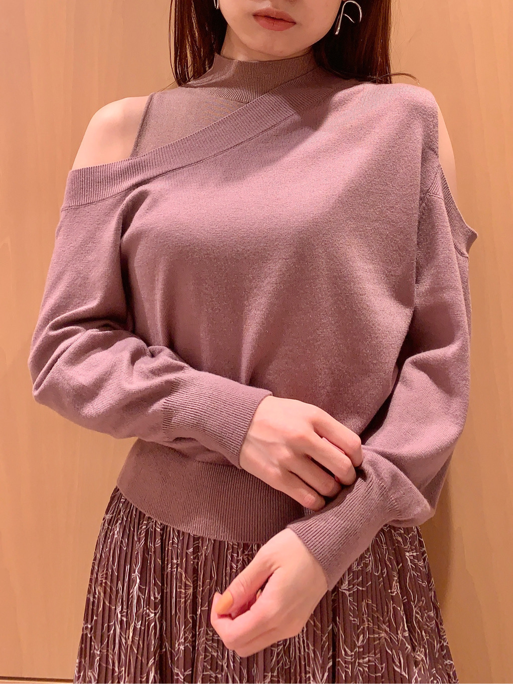 ノースリーブとワンショルダーの2種類のニットをレイヤードし、絶妙なバランスでアシンメトリーにデザインしたプルオーバー。程良いエッジと大人の肌見せでトレンド感を意識し、コーディネートの主役を担う存在感を発揮します。ノースリーブニットにはハイゲージのドライな糸を使用して透け感を出し、素材に差をつけることでスタイリングに奥行きを持たせました。