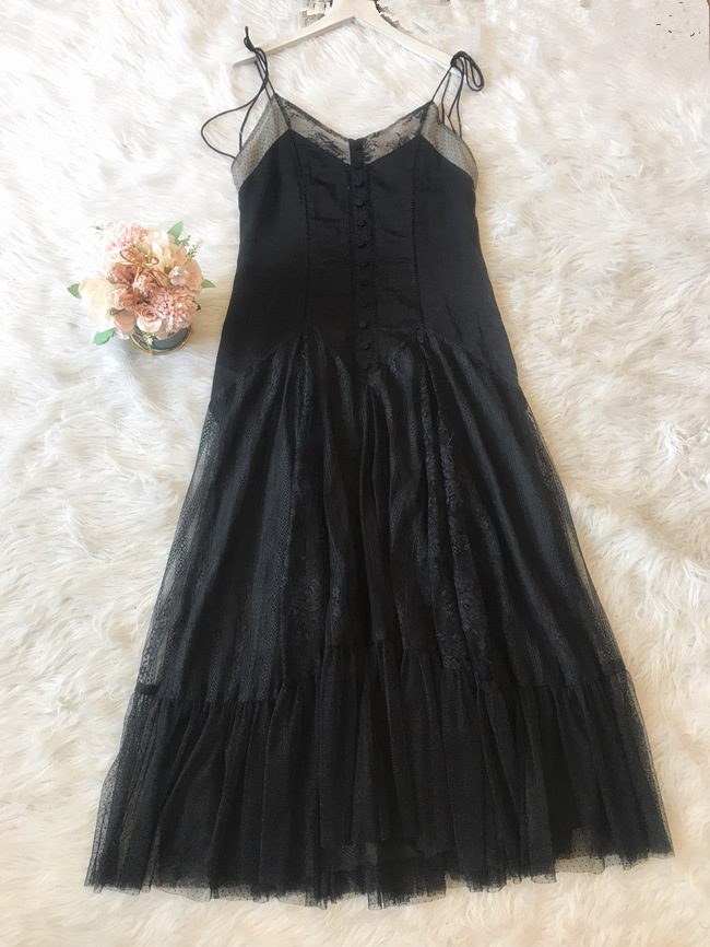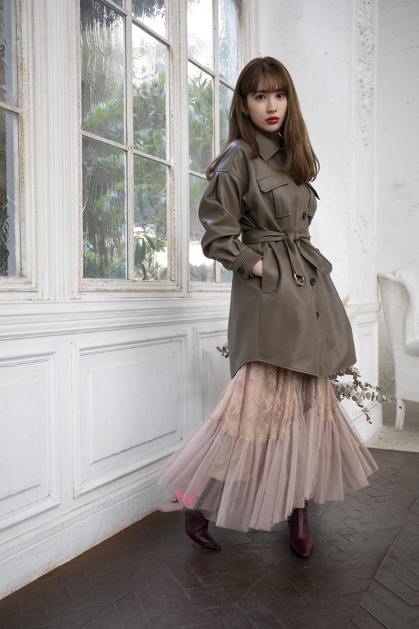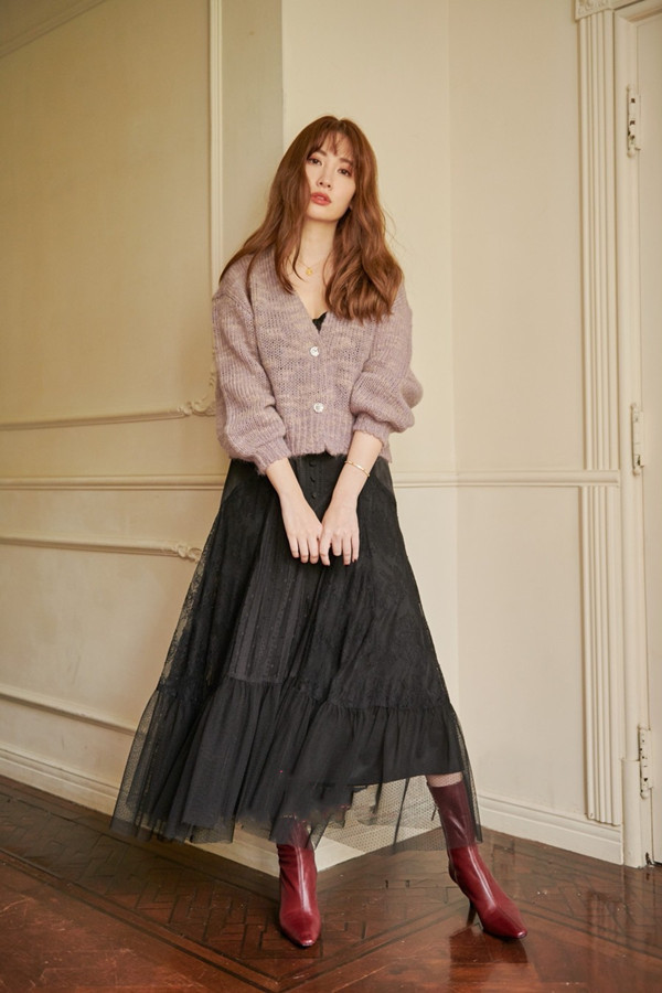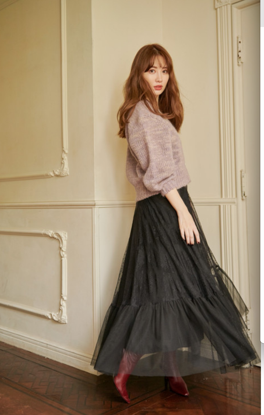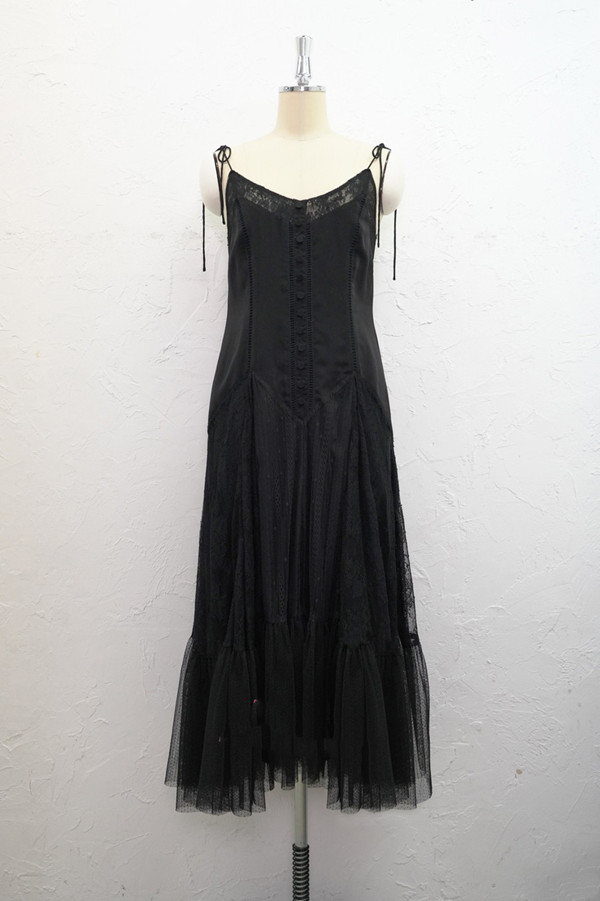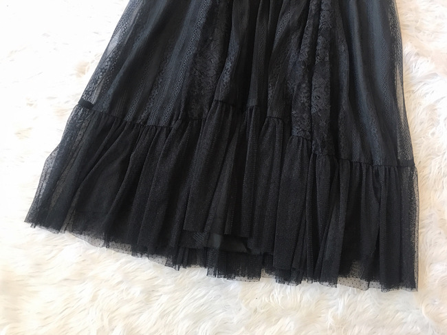 マットサテンとレースを組み合わせることによりエレガントさをプラス、重なり合ったレースが歩くたびに表情豊かな上品さを演出してくれます。
