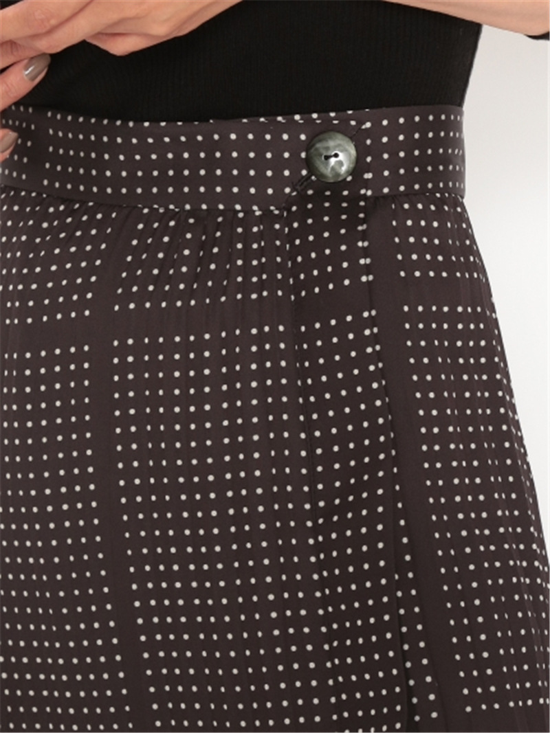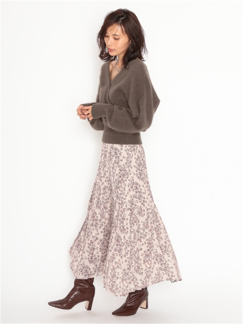繊細かつクラシカルな印象を醸すバリエーションスカート。ウエストからヒップは細プリーツですっきりと、切り替えから裾にかけてはプリーツを消し、華やかに広がるフレアラインを表現しました。ラップ調デザインが品の良さを醸し、緩やかなアシンメトリーは女性らしさを引き立てます。座り姿勢までも美しい優美なシルエットで、冬のコーディネートをドラマティックに彩ります。
