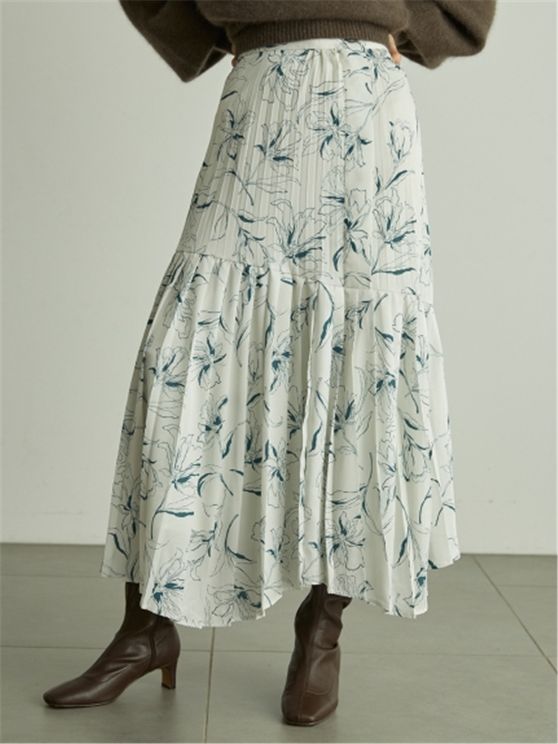 【優美なシルエットと大人プリントが魅力のバリエーションスカート】