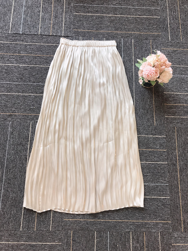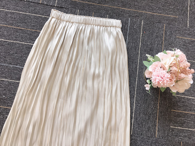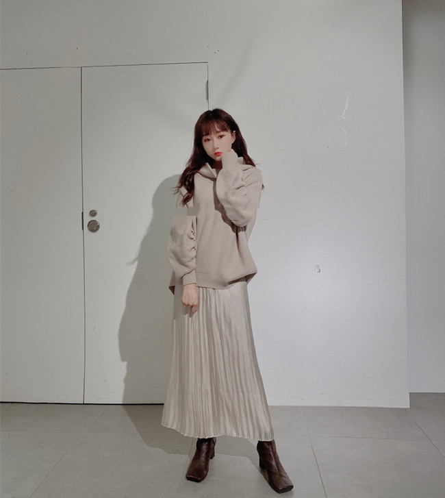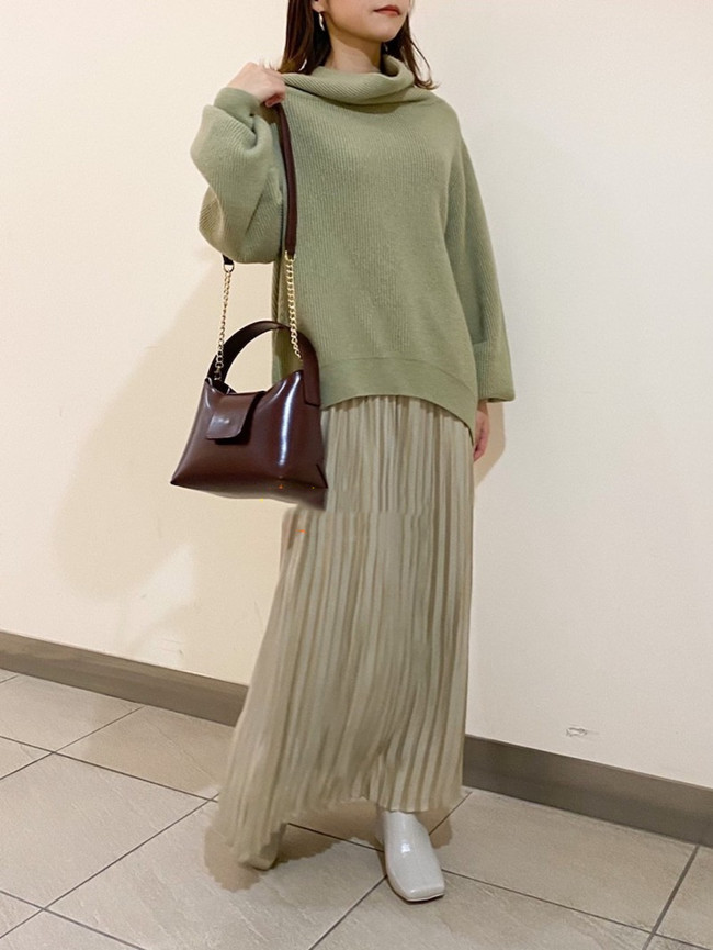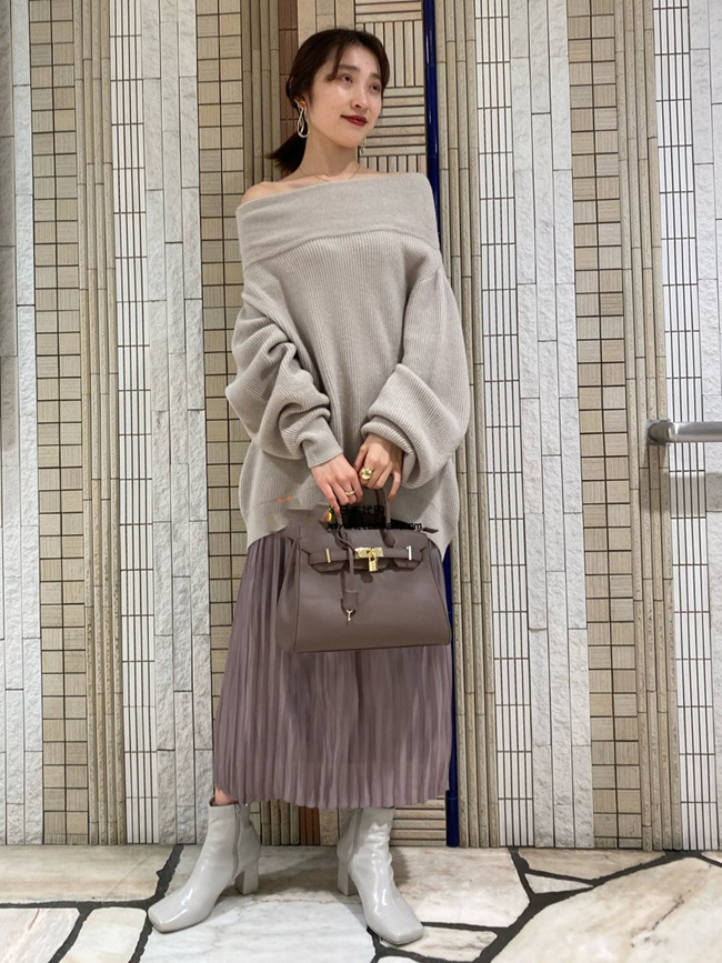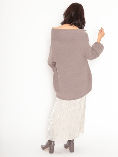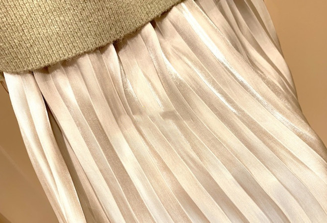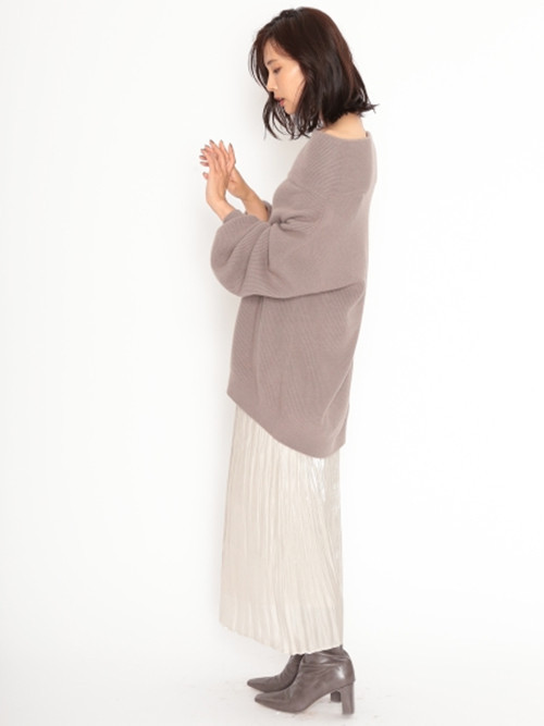 一枚で旬のコーディネートが完成する、ニットとスカートのセットアイテム。アシンメトリーデザインのニットは、着るだけでトレンド感のある表情に。伸縮性のあるリブ編みを採用しているので、肩の落とし具合は自由に調整いただけます。存在感のあるオーバーサイズですが、軽い仕上がりでストレスフリーな着心地を叶えました。袖の内側にはタックをあしらい、綺麗なボリュームがキープ出来るよう工夫しています。オーロラに輝くプリーツスカートは、Iラインにすることで新鮮なシルエットに。それぞれセパレートでも着用でき、抜群の着回し力でコーディネートを彩ります。