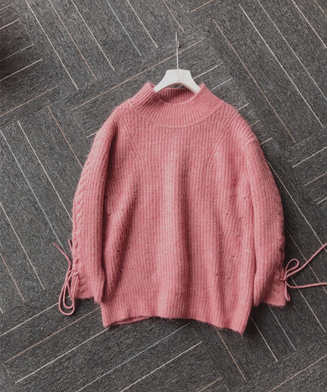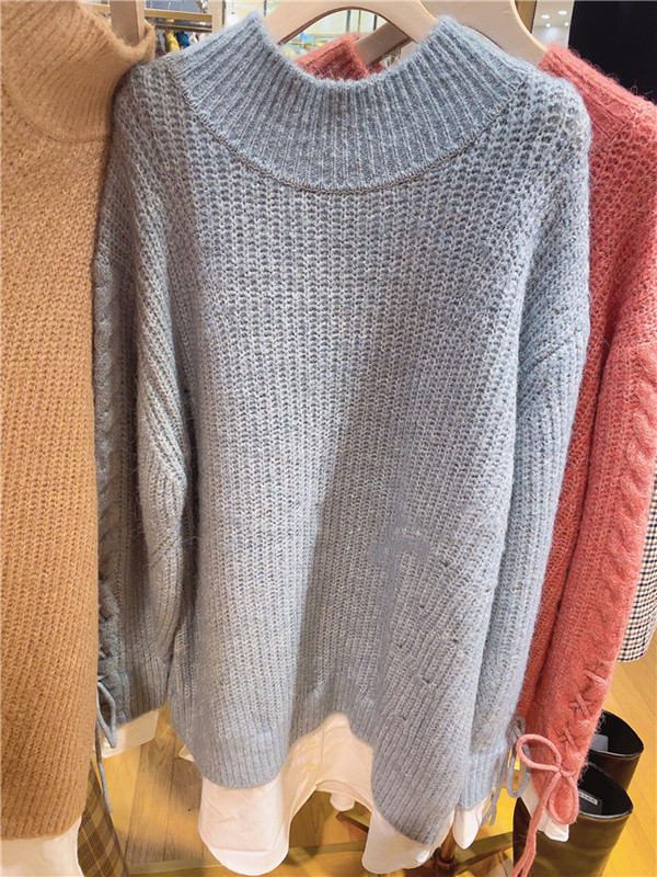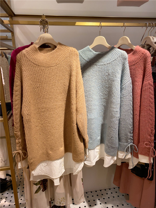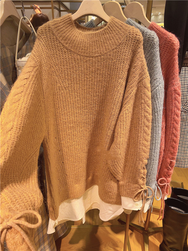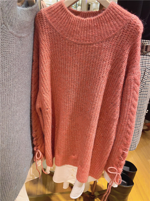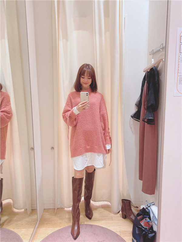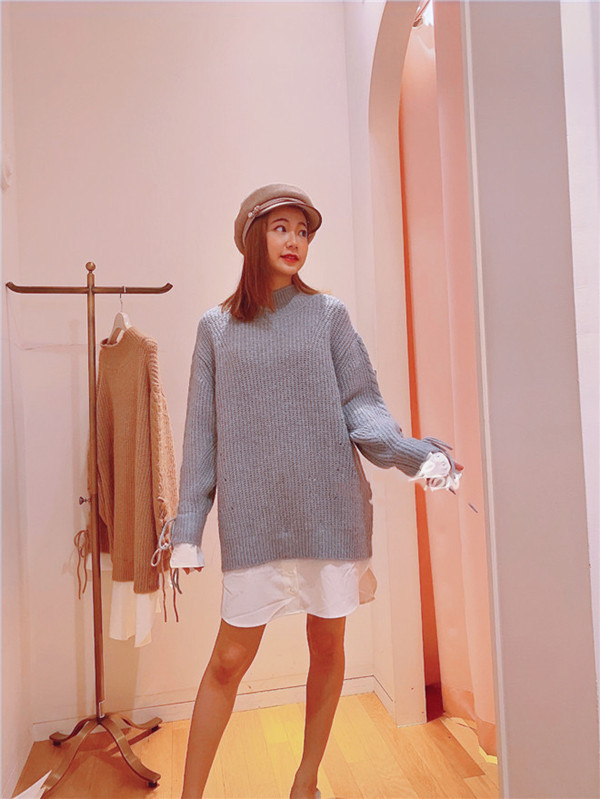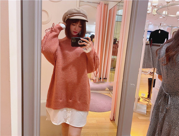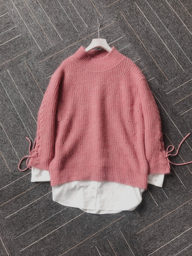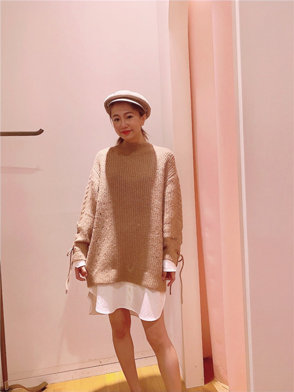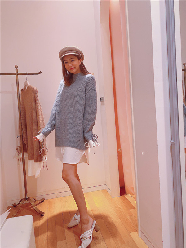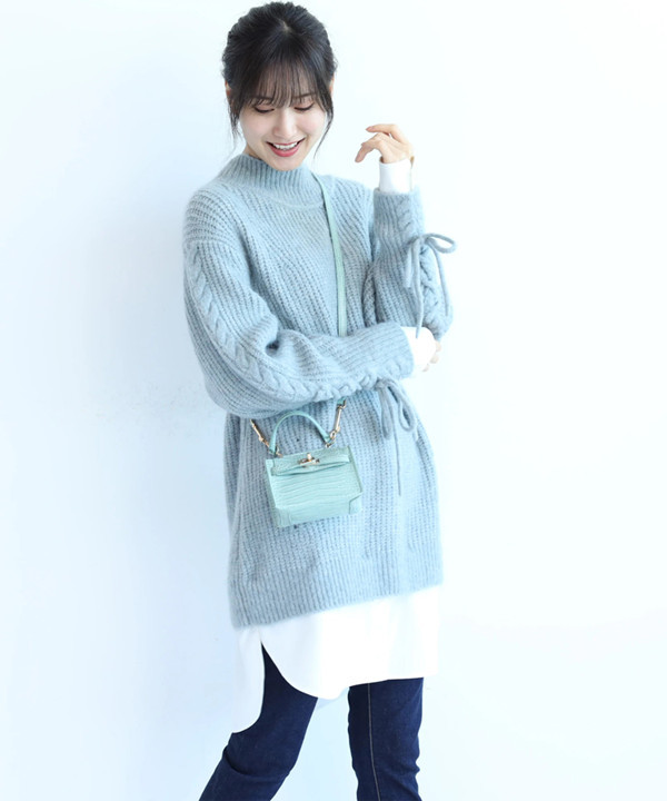 ざっくり感が女性らしい柔らかな印象を与えてくれるニットは、袖口のレースアップ仕様で甘さをグッと加速。シャツワンピースをインに合わせて、好感度レイヤードスタイルが手軽に楽しめるお得な2アイテムセットです。