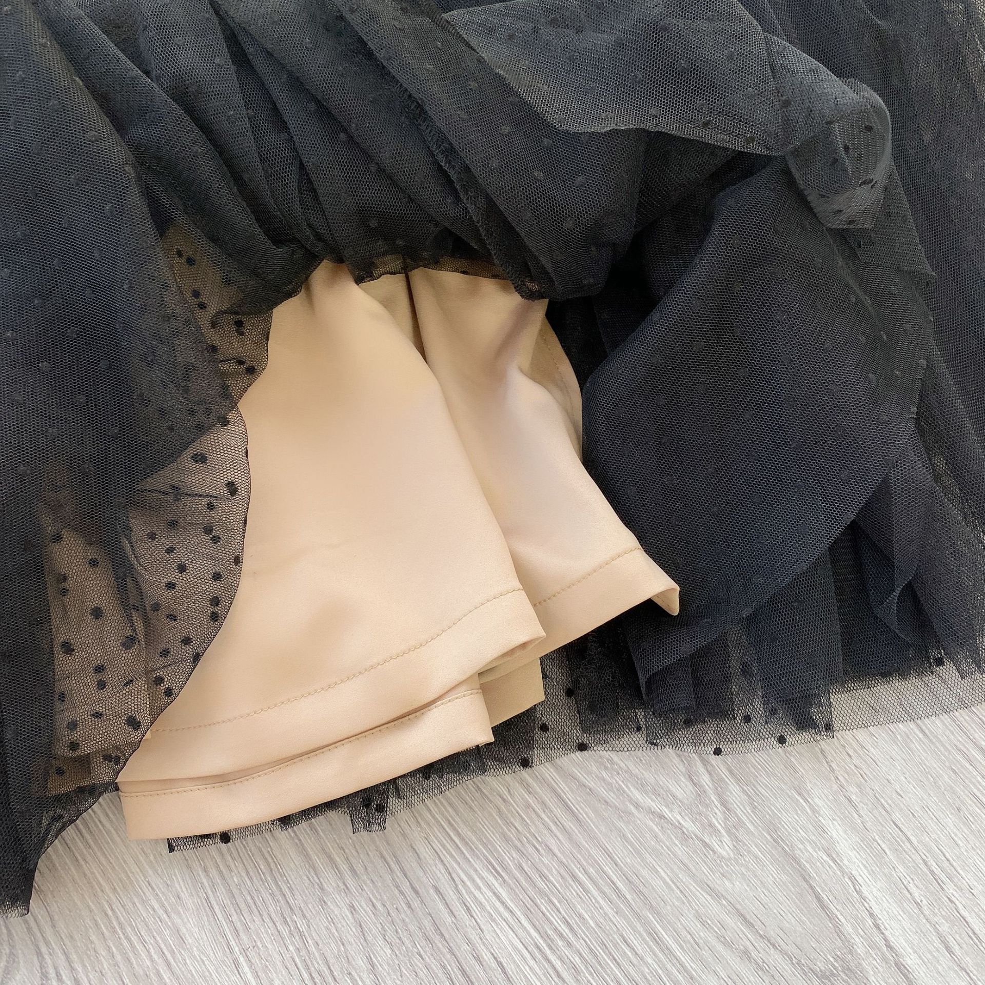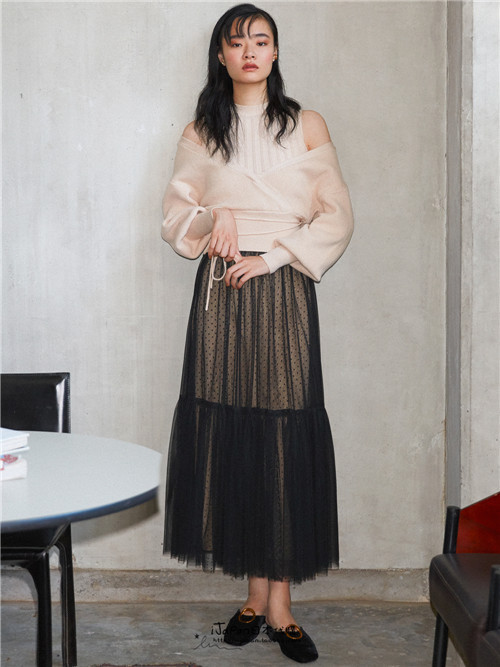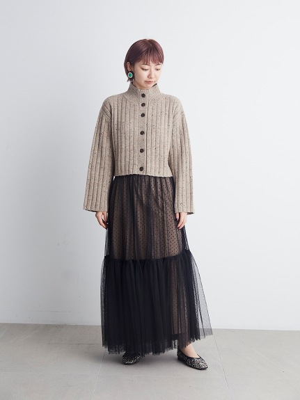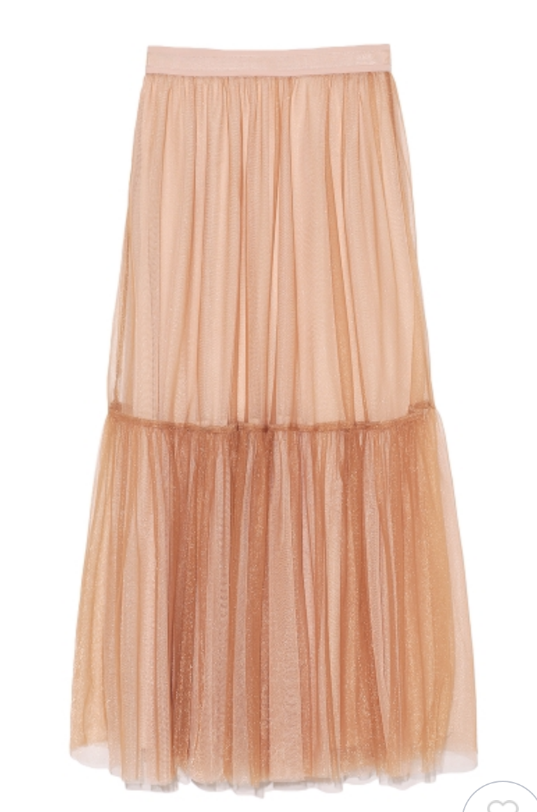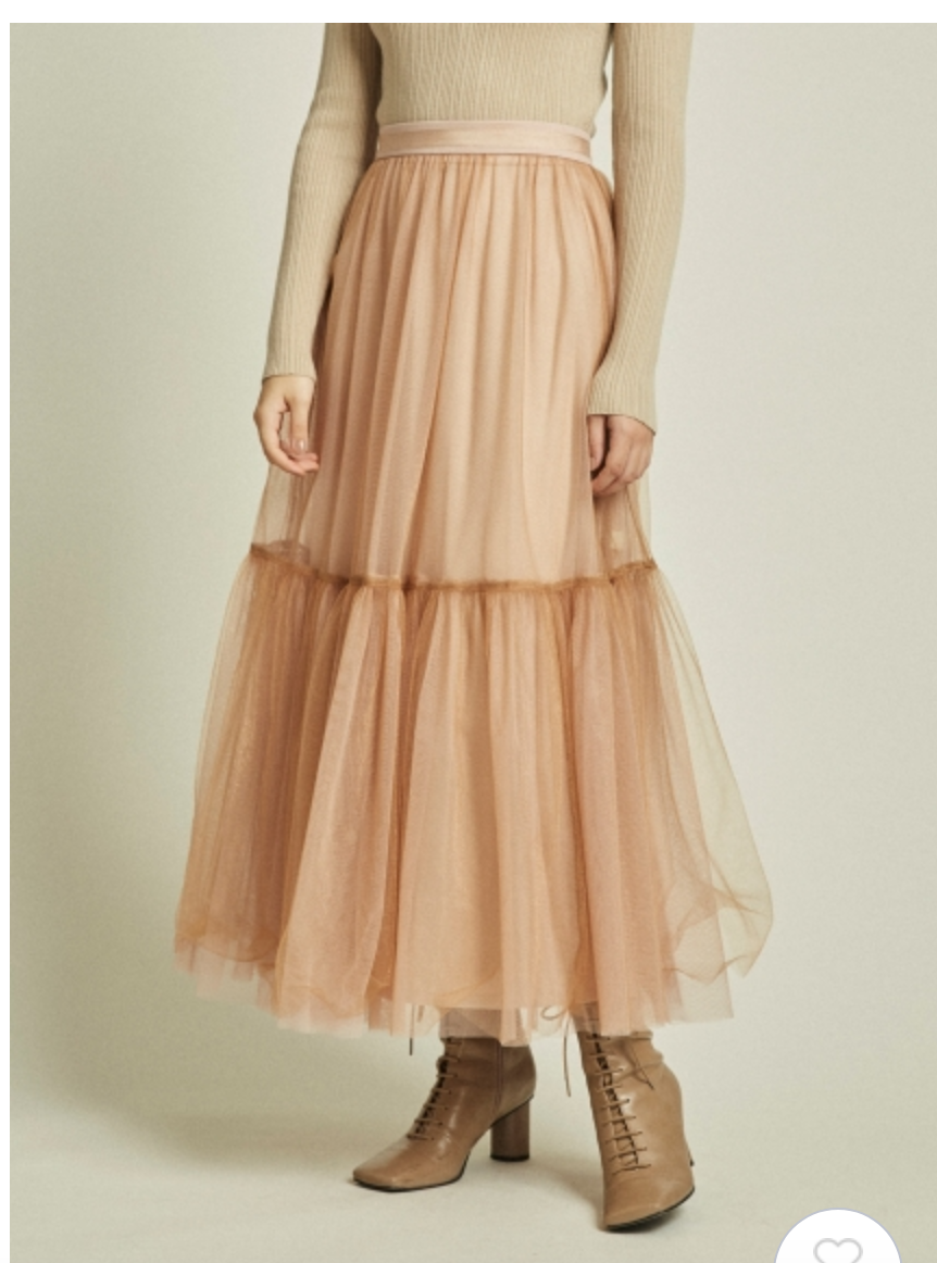 2枚のチュールを分量たっぷりに使用し、女性らしい華やかなボリュームを出したチュールスカート。ウエストからヒップにかけてはすっきりと、切り替え下から重さを出すことでバランスの良いフレアを実現しました。ベージュとピンクは動くたびにさり気なくラメが煌めき、軽やかな装いで奥行きある表情を演出。後ろウエストゴムで穿き心地も快適に、裏地は取り外しができるのでパンツ合わせのレイヤードもお楽しみいただけます。