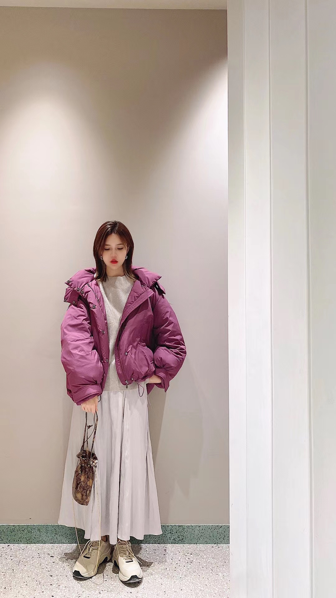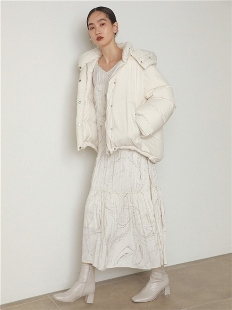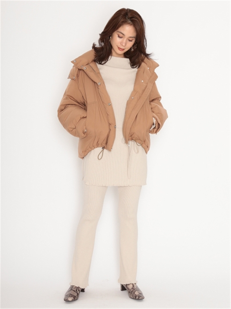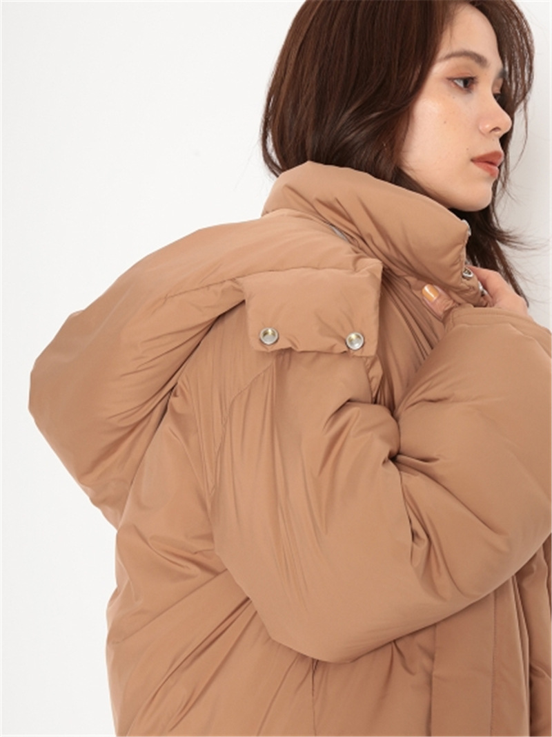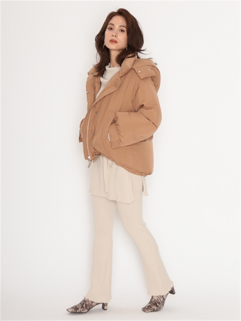 「SNIDEL」らしいデザイン性の高さが人気のダウンジャケット。丸みのある柔らかなフォルムと合わせやすいカラー展開で今年持っておきたいダウンです。。肩回りは大きく見えないようダウンの量を少なめに、フードにはたっぷりとダウンを入れて小顔効果を実現。ふんわりとしたシルエットを活かすためステッチは裏地にのみ使用し、レディライクに魅せる全体バランスと暖かさにこだわった至極の一枚です。