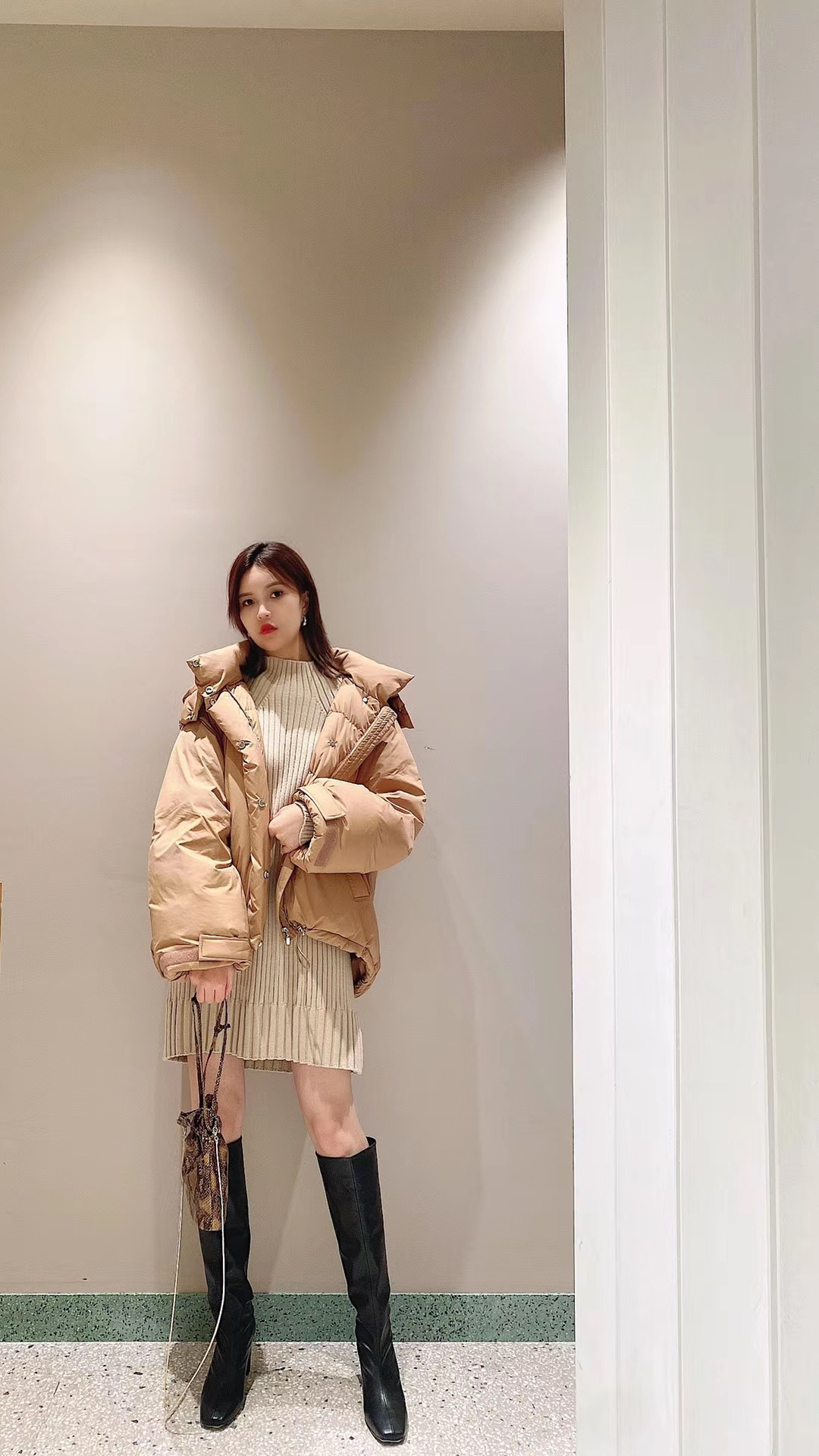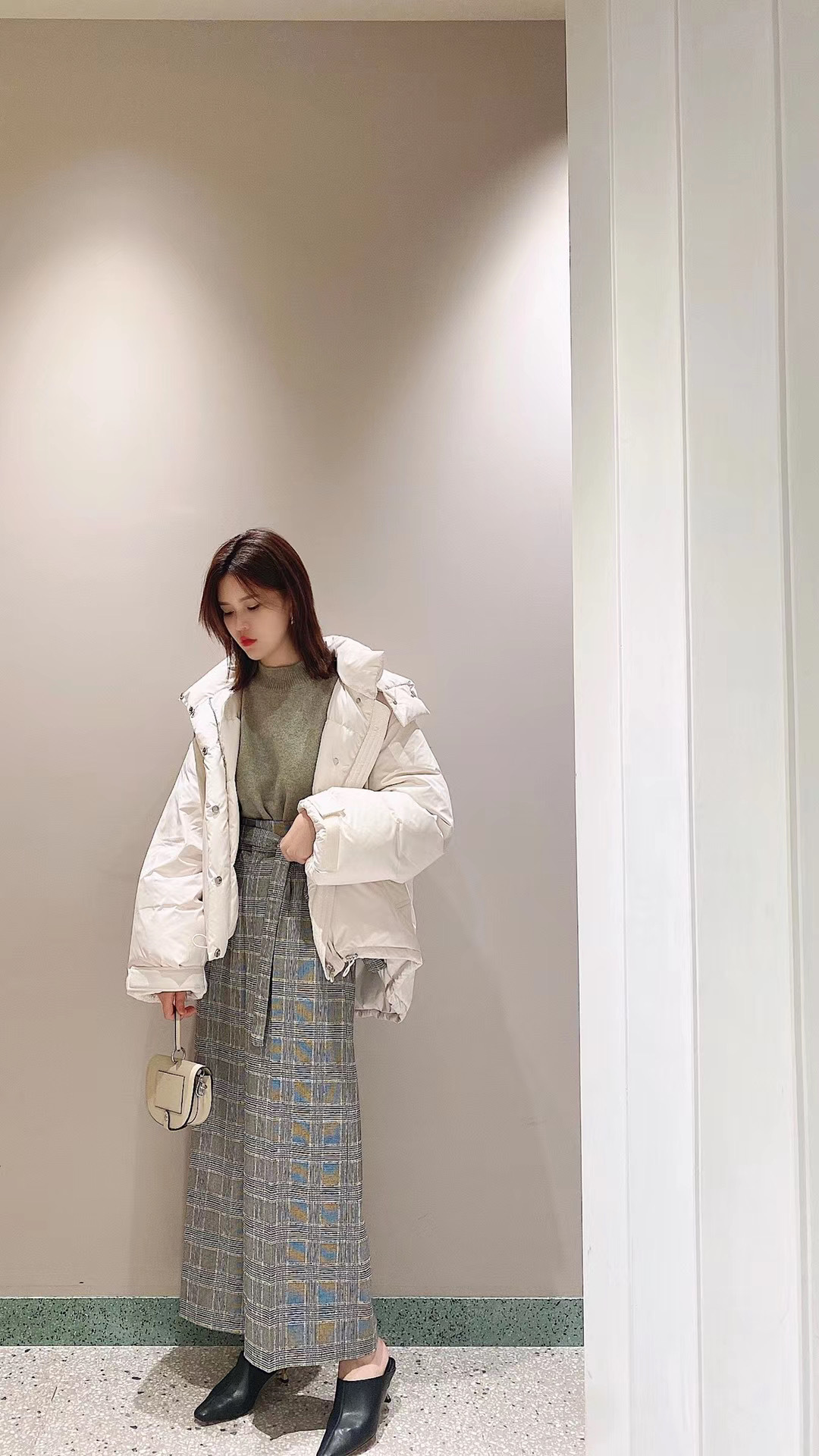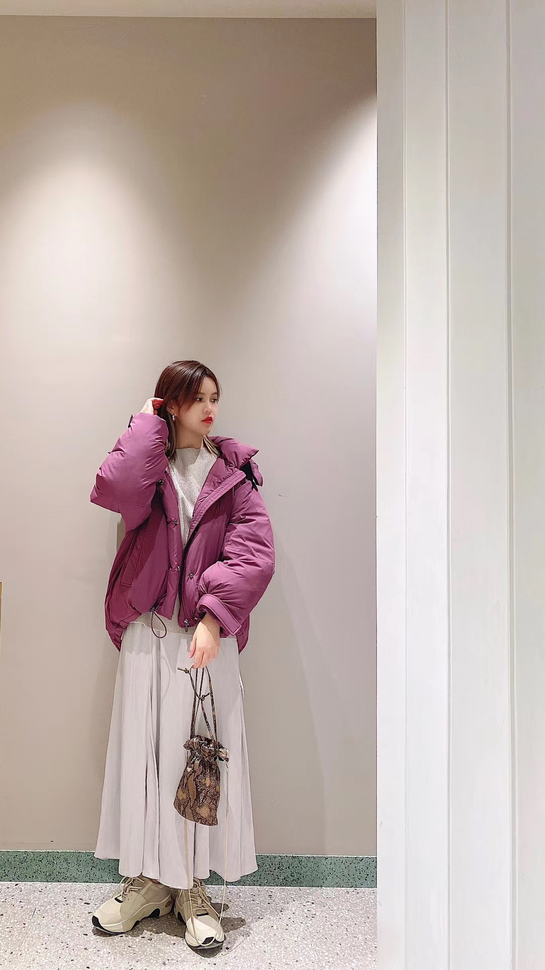 「SNIDEL」らしいデザイン性の高さが人気のダウンジャケット。丸みのある柔らかなフォルムと合わせやすいカラー展開で今年持っておきたいダウンです。。肩回りは大きく見えないようダウンの量を少なめに、フードにはたっぷりとダウンを入れて小顔効果を実現。ふんわりとしたシルエットを活かすためステッチは裏地にのみ使用し、レディライクに魅せる全体バランスと暖かさにこだわった至極の一枚です。