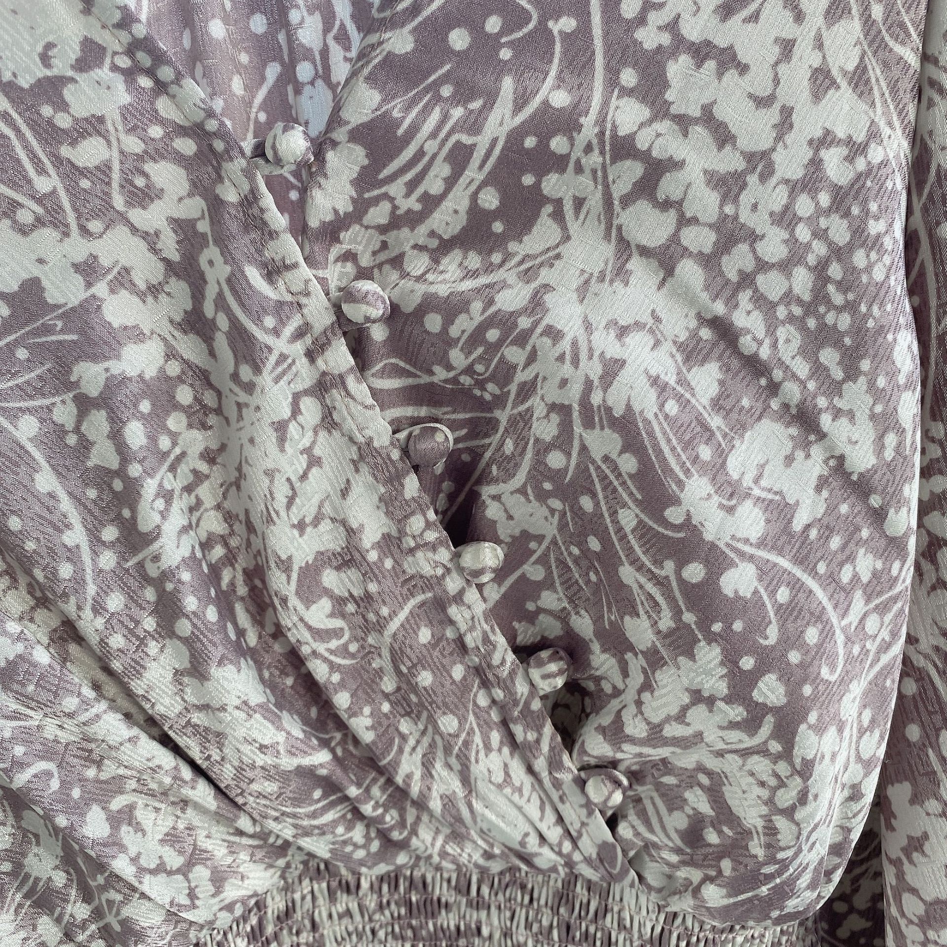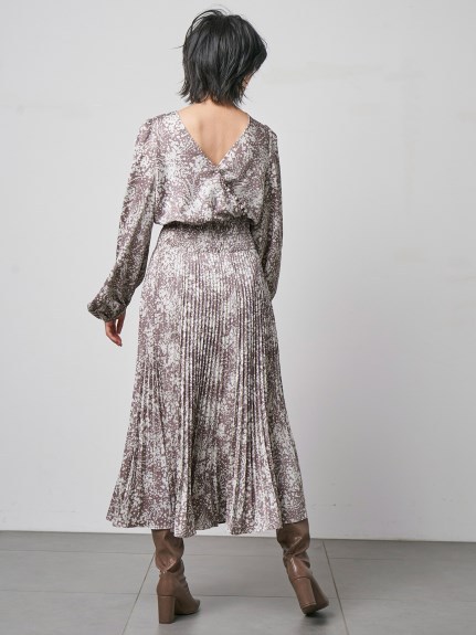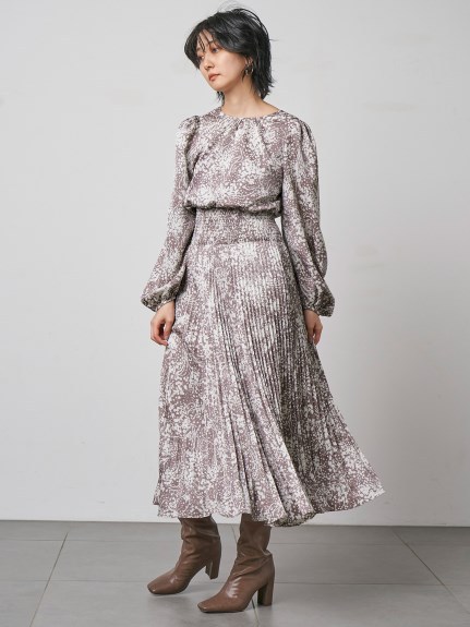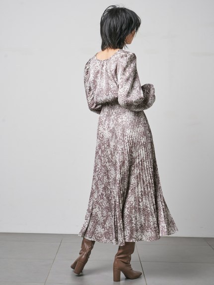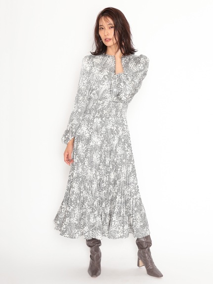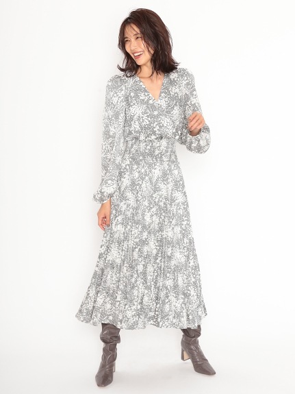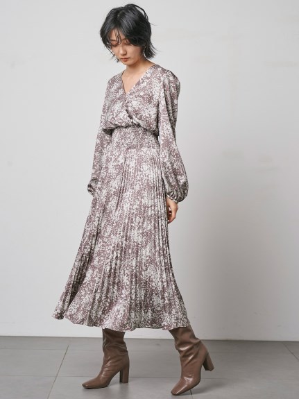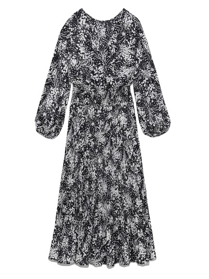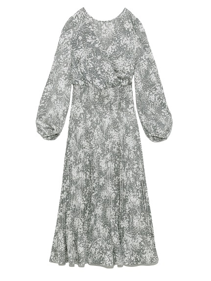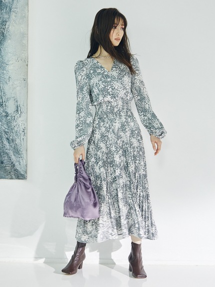 繊細な模様のサテンジャガード生地に有機的なプリントを載せ、華やかに仕上げたロングワンピース。女性らしいカシュクールとシンプルなクルーネックは前後着用が可能。シーンや気分に合わせ、アレンジを変えて楽しむことができます。太めのウエストシャーリングでメリハリを持たせ、たっぷりのボリュームスリーブや、スカートのアコーディオンプリーツなど、細部にまでとことん「SNIDEL」らしいディティールを詰め込んだ贅沢な一枚です。※脇ファスナー付になります。