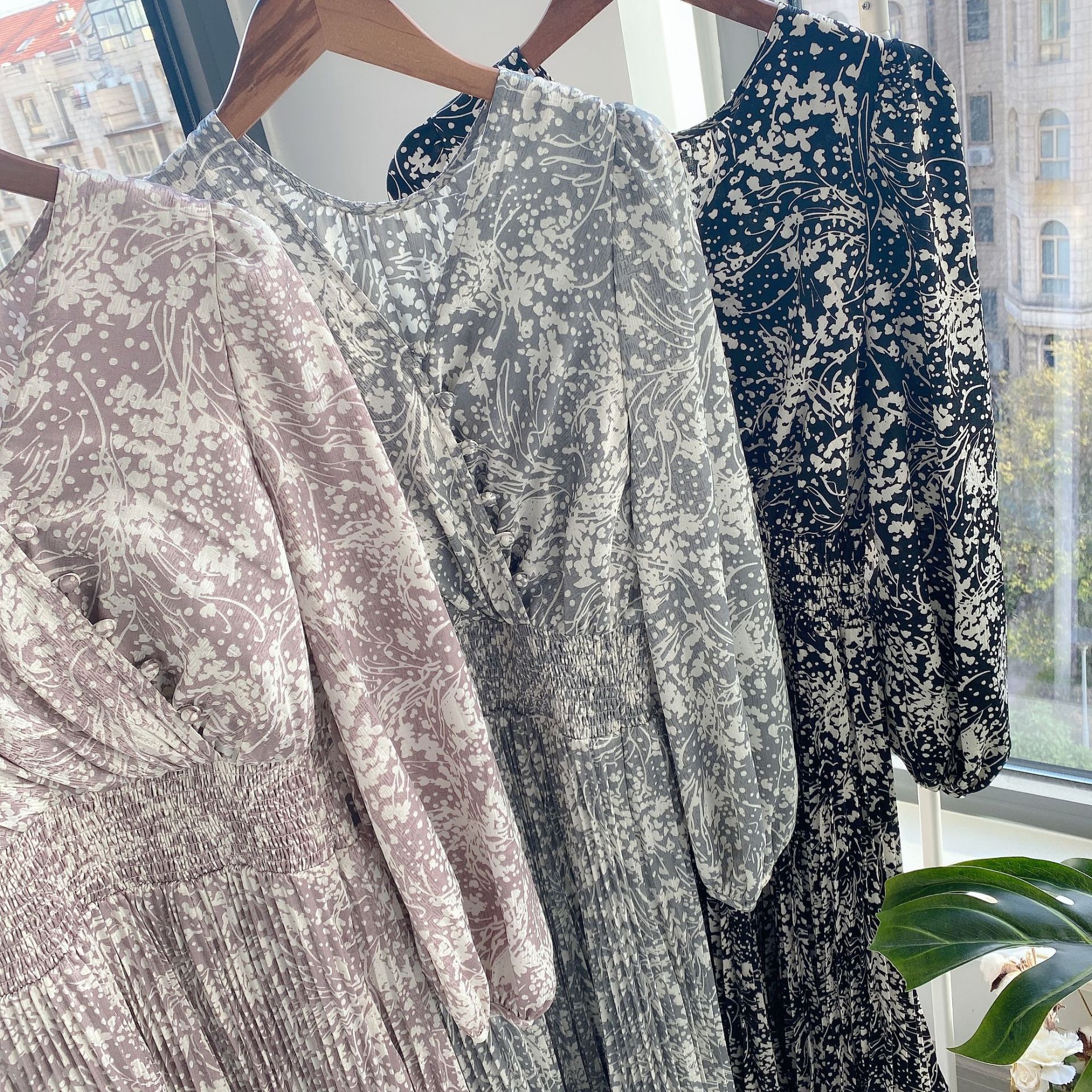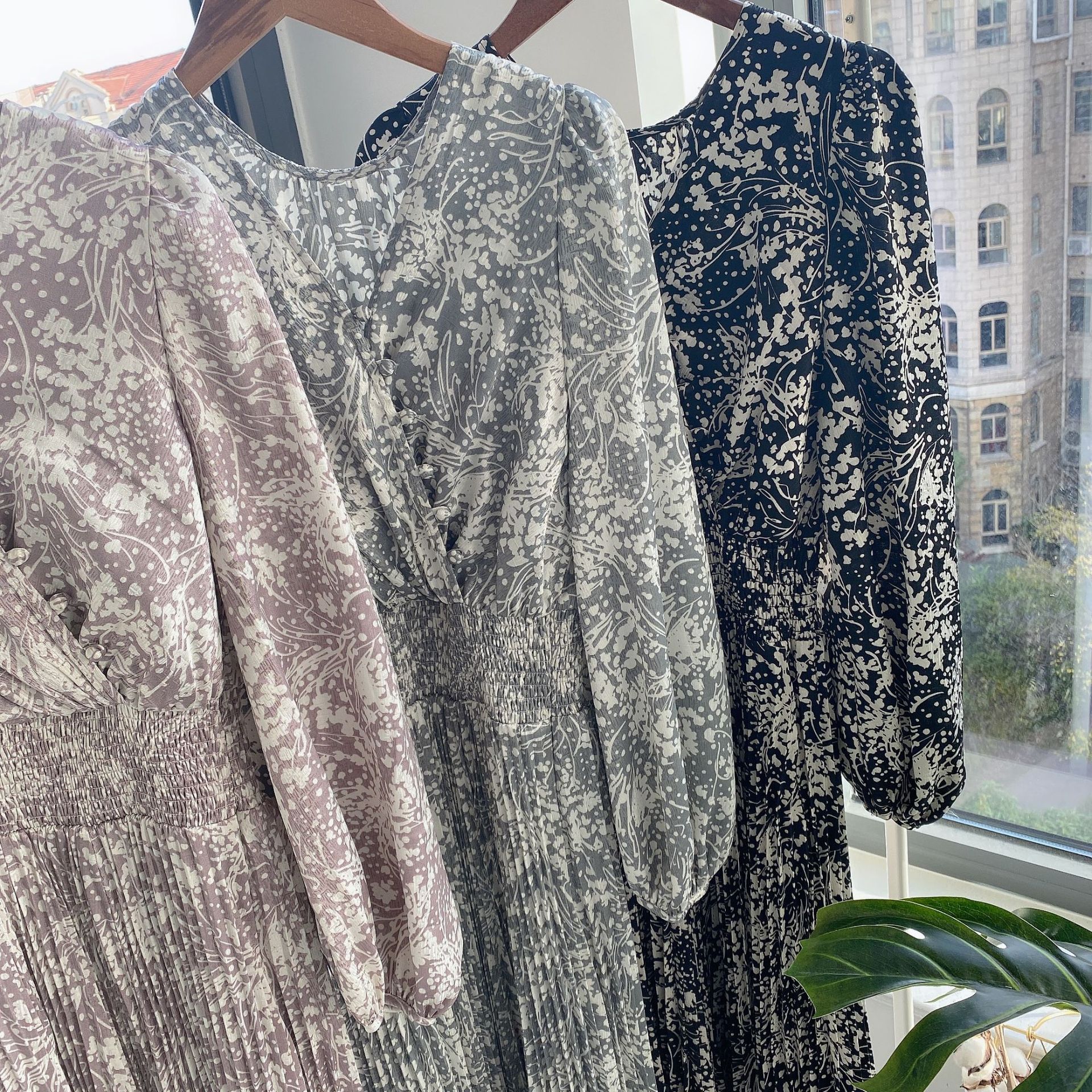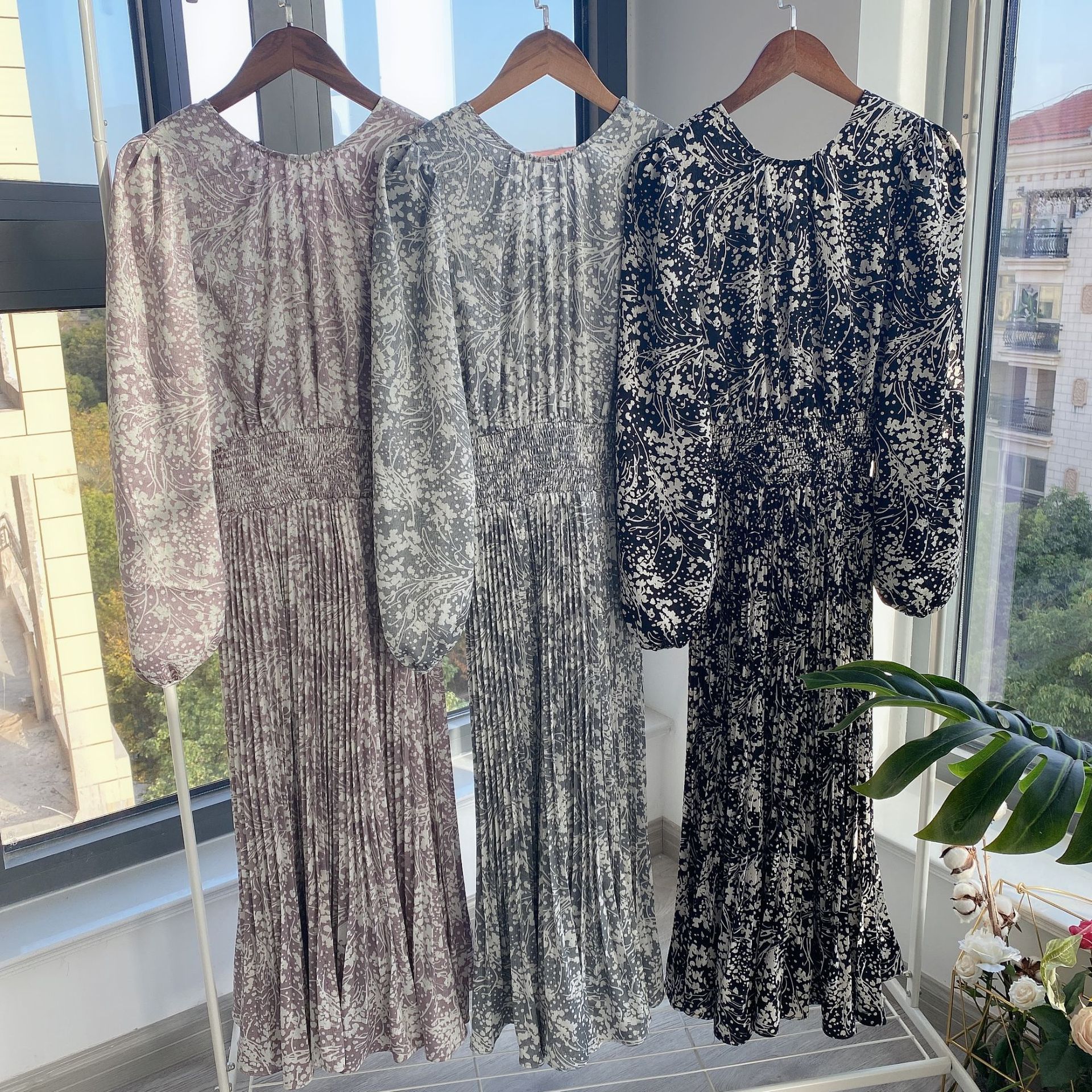 繊細な模様のサテンジャガード生地に有機的なプリントを載せ、華やかに仕上げたロングワンピース。女性らしいカシュクールとシンプルなクルーネックは前後着用が可能。シーンや気分に合わせ、アレンジを変えて楽しむことができます。太めのウエストシャーリングでメリハリを持たせ、たっぷりのボリュームスリーブや、スカートのアコーディオンプリーツなど、細部にまでとことん「SNIDEL」らしいディティールを詰め込んだ贅沢な一枚です。※脇ファスナー付になります。
