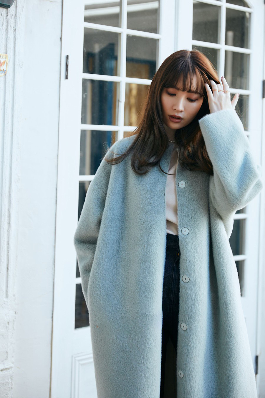 体を包みこむゆったりとしたエッグラインシルエットで、トレンドのローゲージニットに合わせても綺麗にお召しいただけます。スナップボタンで着脱がしやすく美しいシルエットの邪魔にならない仕様。