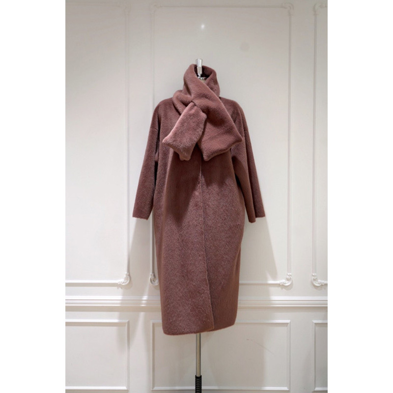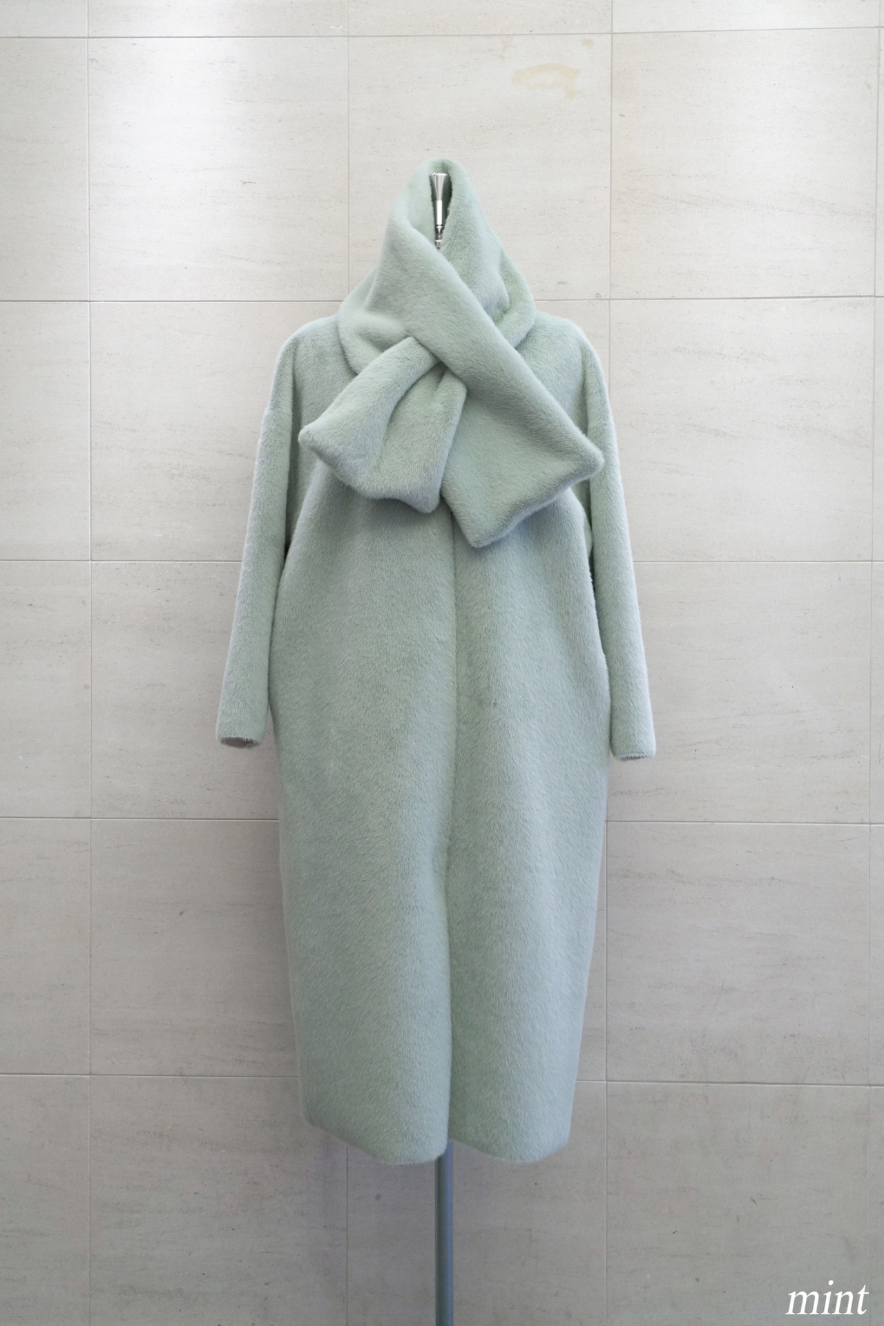 美しいシームレスのはぎは、どちらの面を表にしても綺麗にお召しいただけるリバーシブル。袖を折り返し、表情の違いを楽しんでいただくのもおすすめです。フェミニンな雰囲気を演出してくれる同素材のティペットと、ステッチを施したスウェード調のベルトをセットにし何通りもの着こなしができる今シーズンの”IT”アウターです。